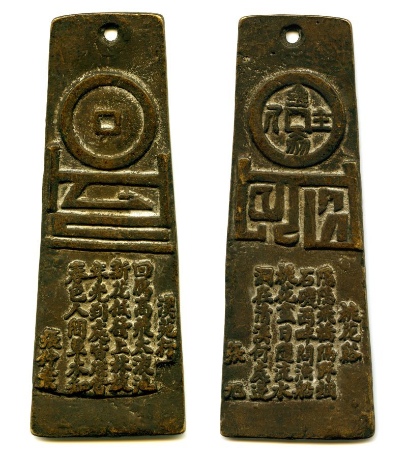 Apparently one side is likely to be a poem from the Tang Dynasty and the top half on each side is most likely the image of a coin.