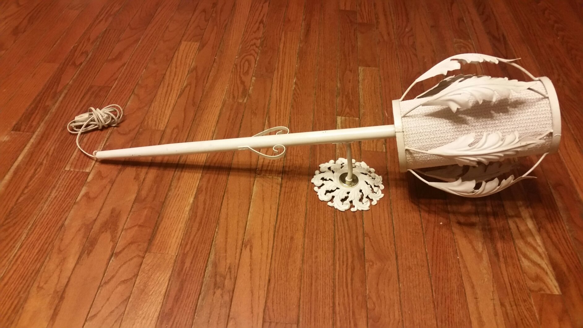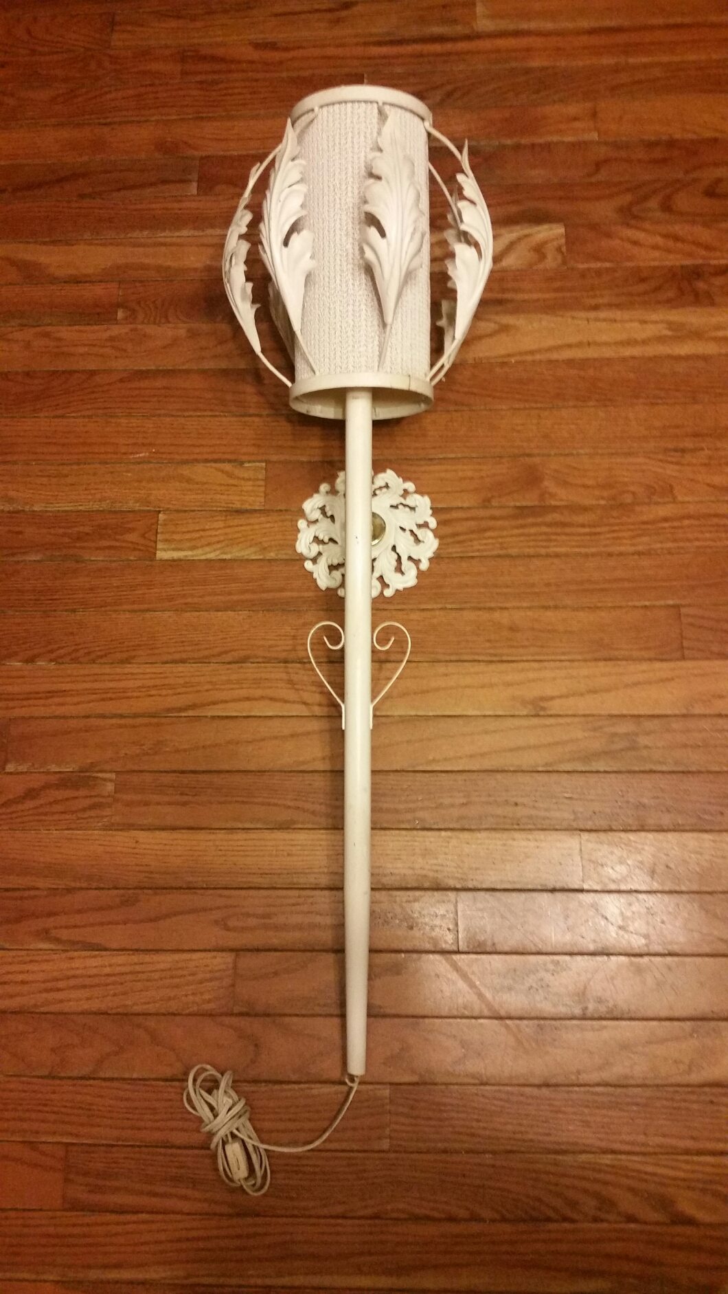 These are 35" long there are no markings. The leaves at the top are metal. The wall hanger is wroght iron. They are turned on by a in line switch.