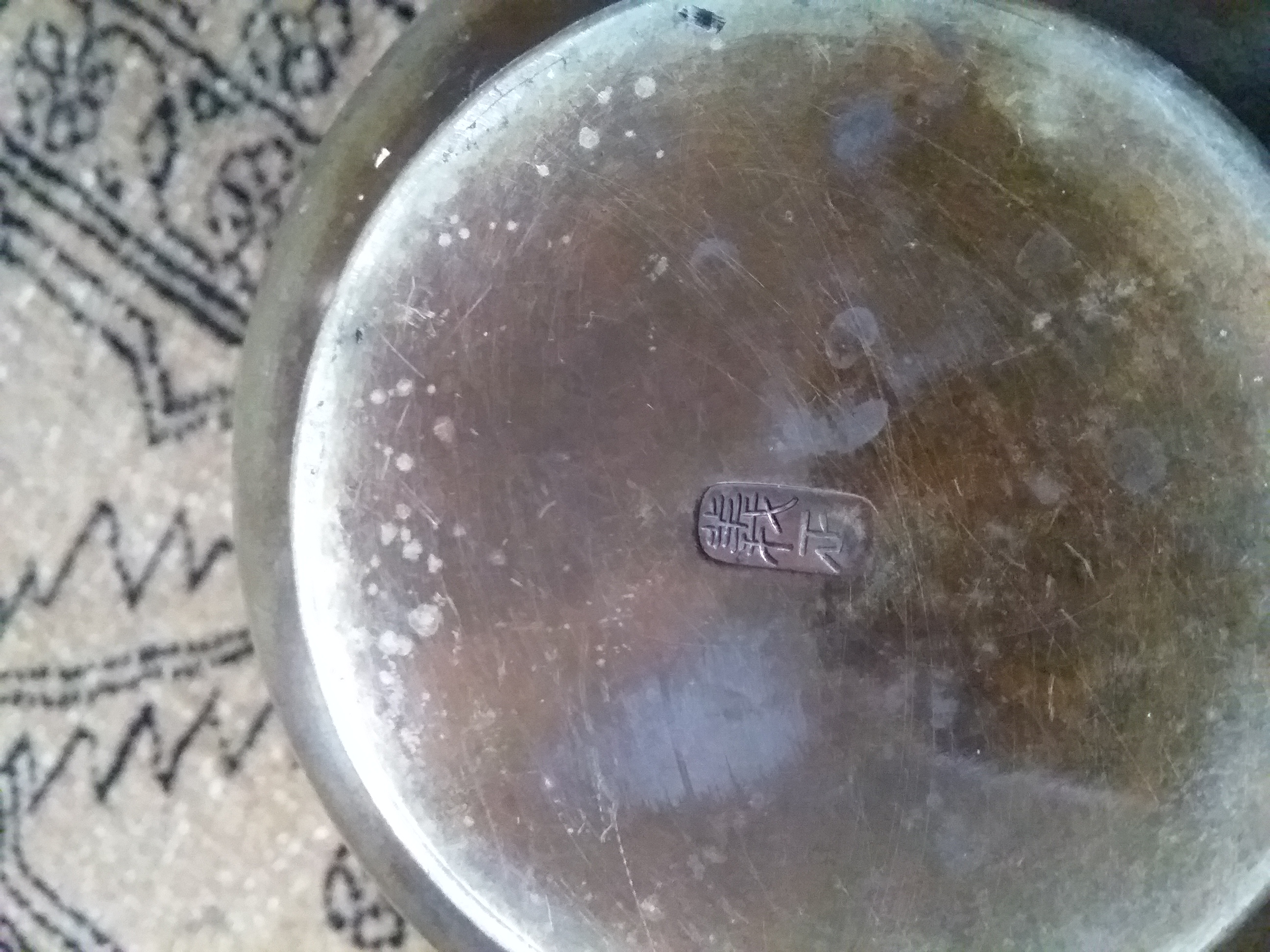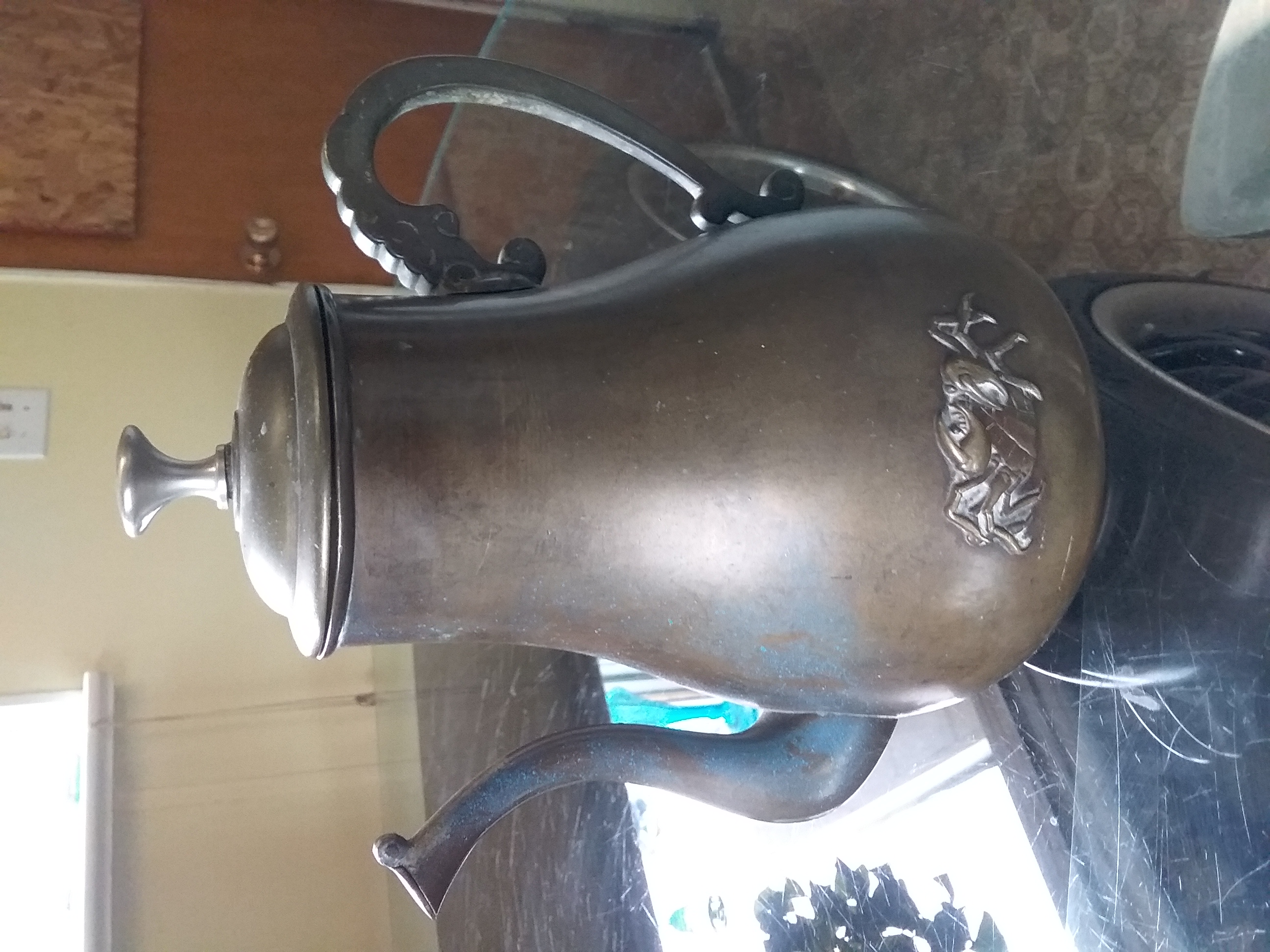 Metal teapot has crabs on it and vietnamese mark on bottom when translated to english it reads 1001 l. Not sure if it is pewter or copper and not sure of the age.