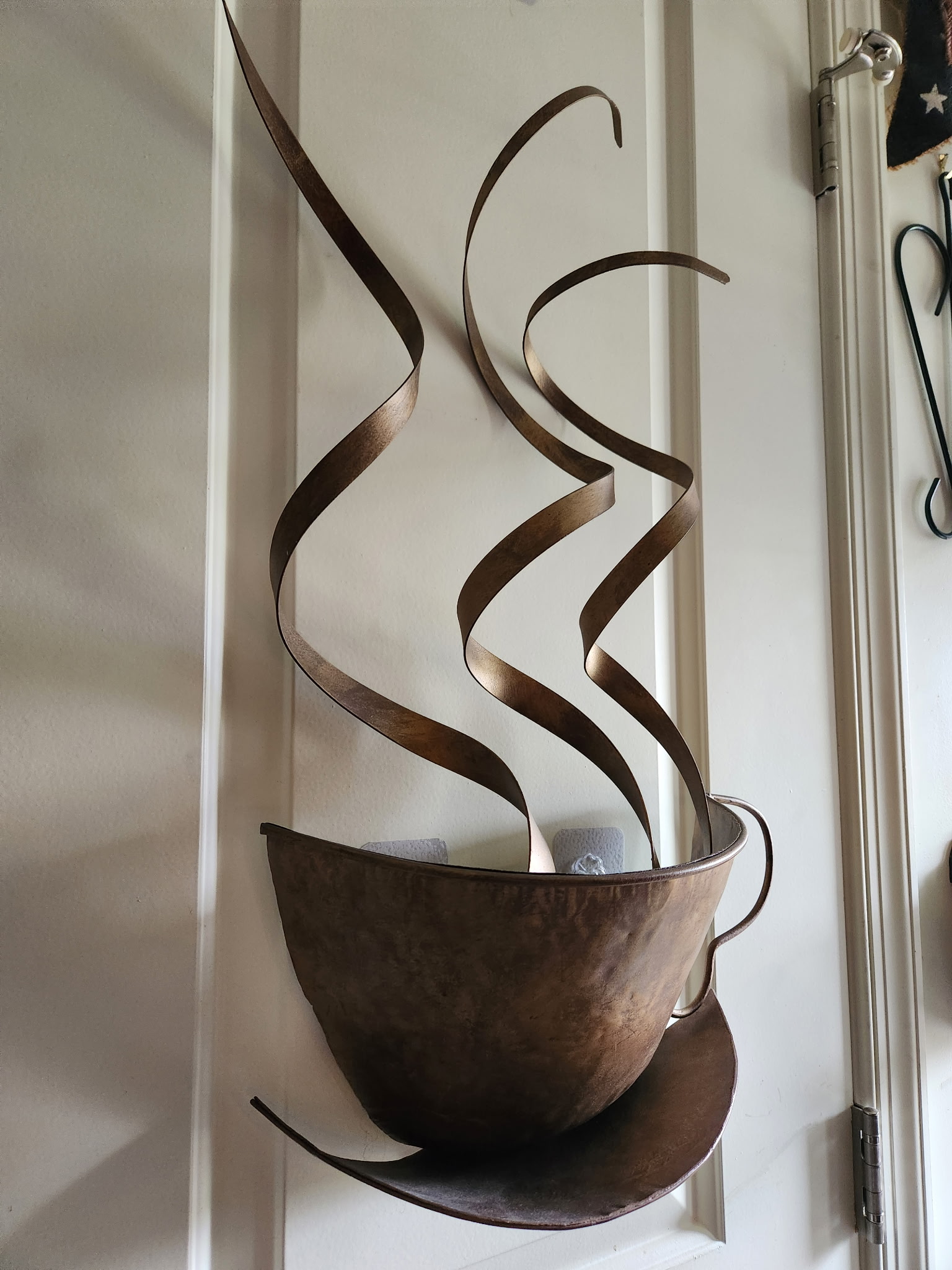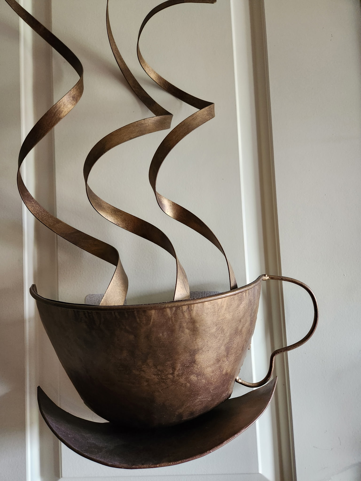metal wall sculpture titled 'Java' or 'Cup of Coffee' by Curtis Jere for Artisan House