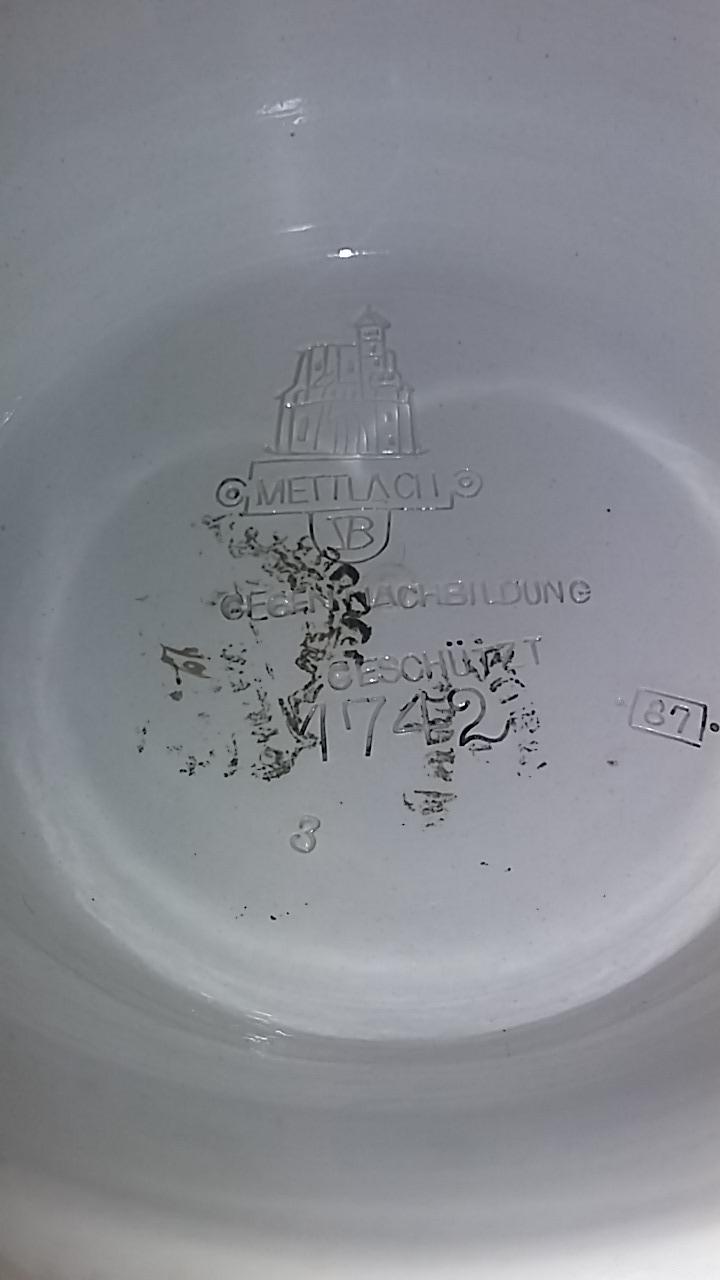 Distinguishing marks Decorated by Christian warth, faded mercury mark (hand stamped) gegen nachbildung geschützt (protected against copying) date stamp 87 (1887)