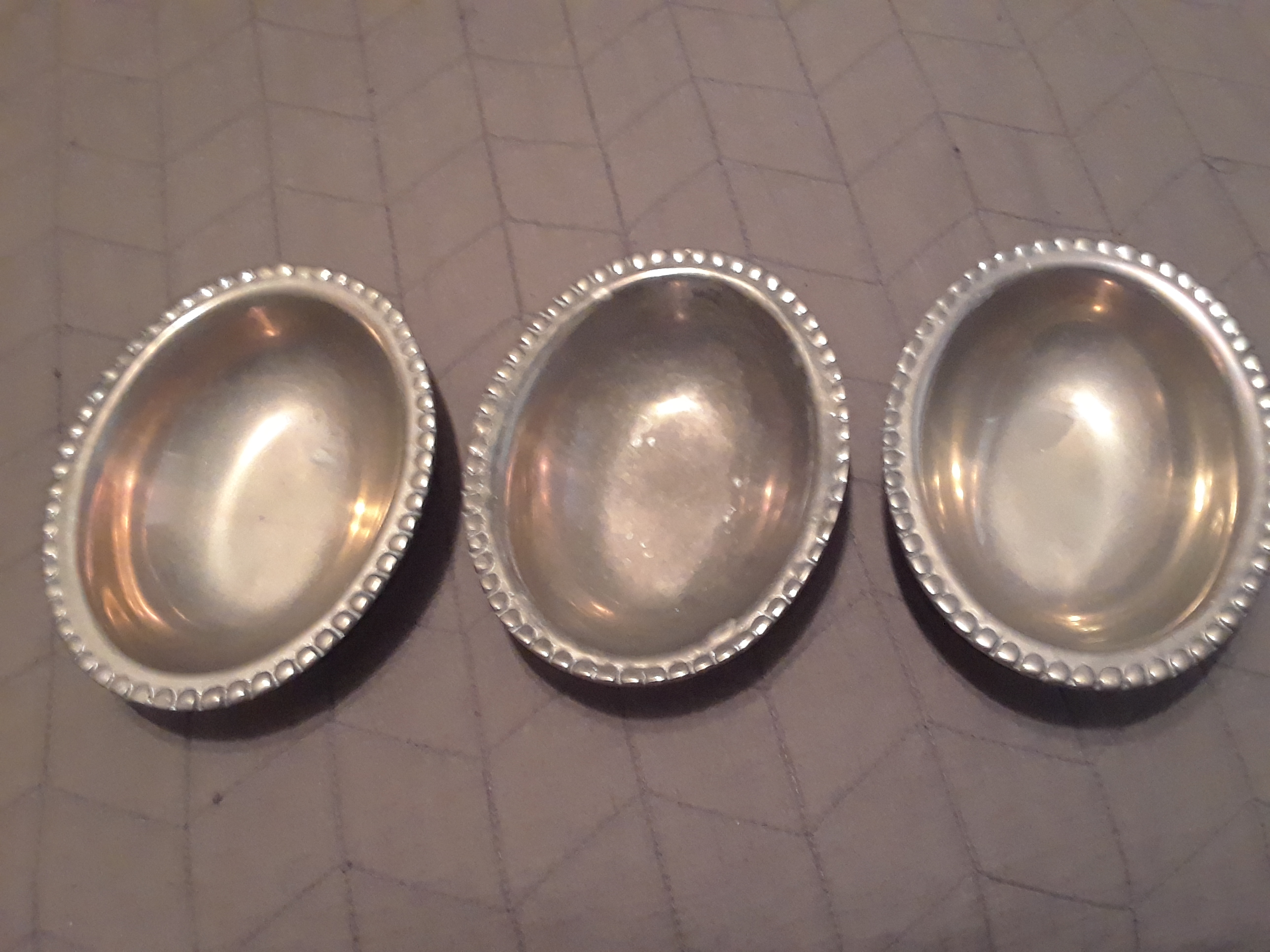 We originally thought they were silver but was informed they were pewter. The 3 sauce bowls do have Ann Kary Stickers on the bottom as well as item #'s. The serving tray and serving bowl have stickets on the bttom that say Hencho En Mexico and another sticker with a company name where it was sold named Bayou City Imports. However, that company has closed down and no longer exsists. We're hoping to sell these beautiful pieces but are currently unaware of what Pewter is worth. Any ideas on how much these pieces are worth and who we could sell them to? Any direction you could point me would be greatly appriciated.