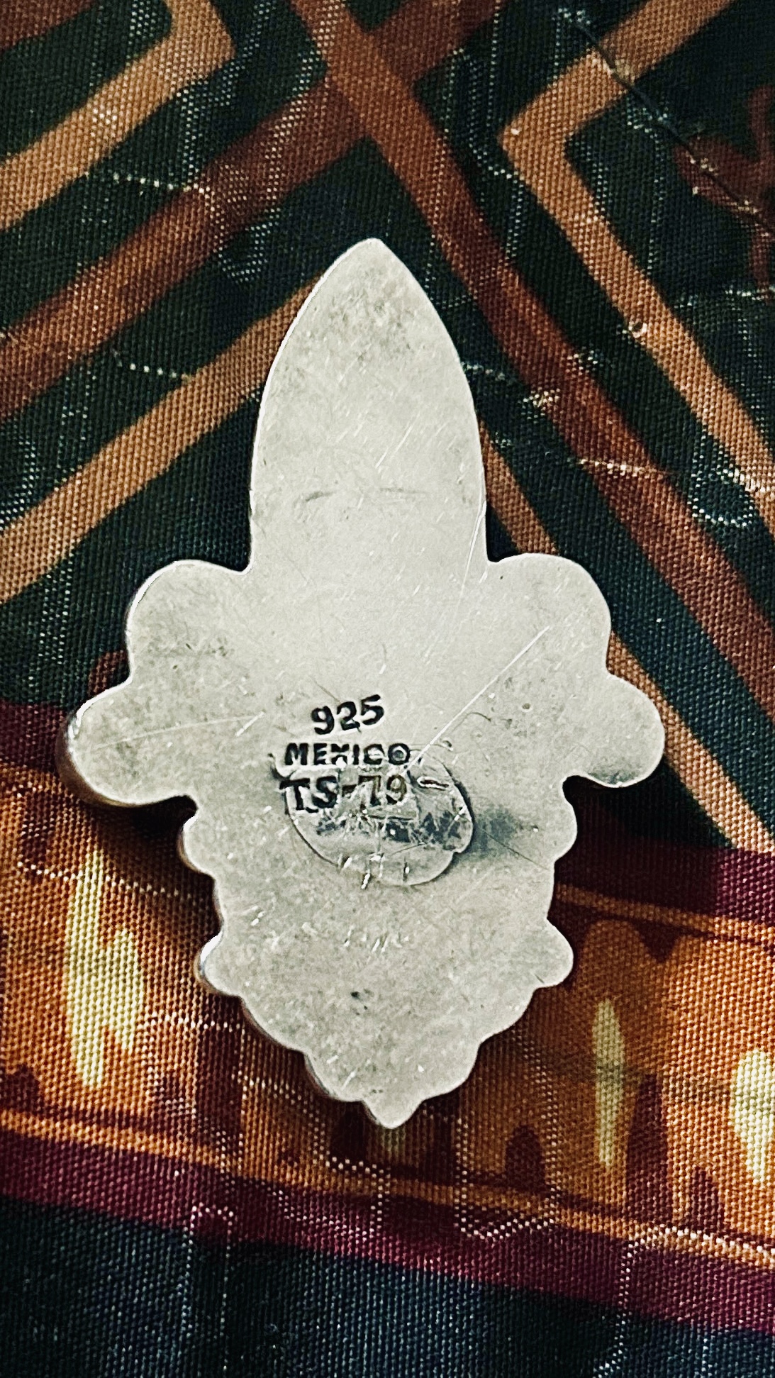 The maker is unidentified, but the piece is marked '925 MEXICO', indicating it is made of sterling silver, a common standard for Mexican jewelry.