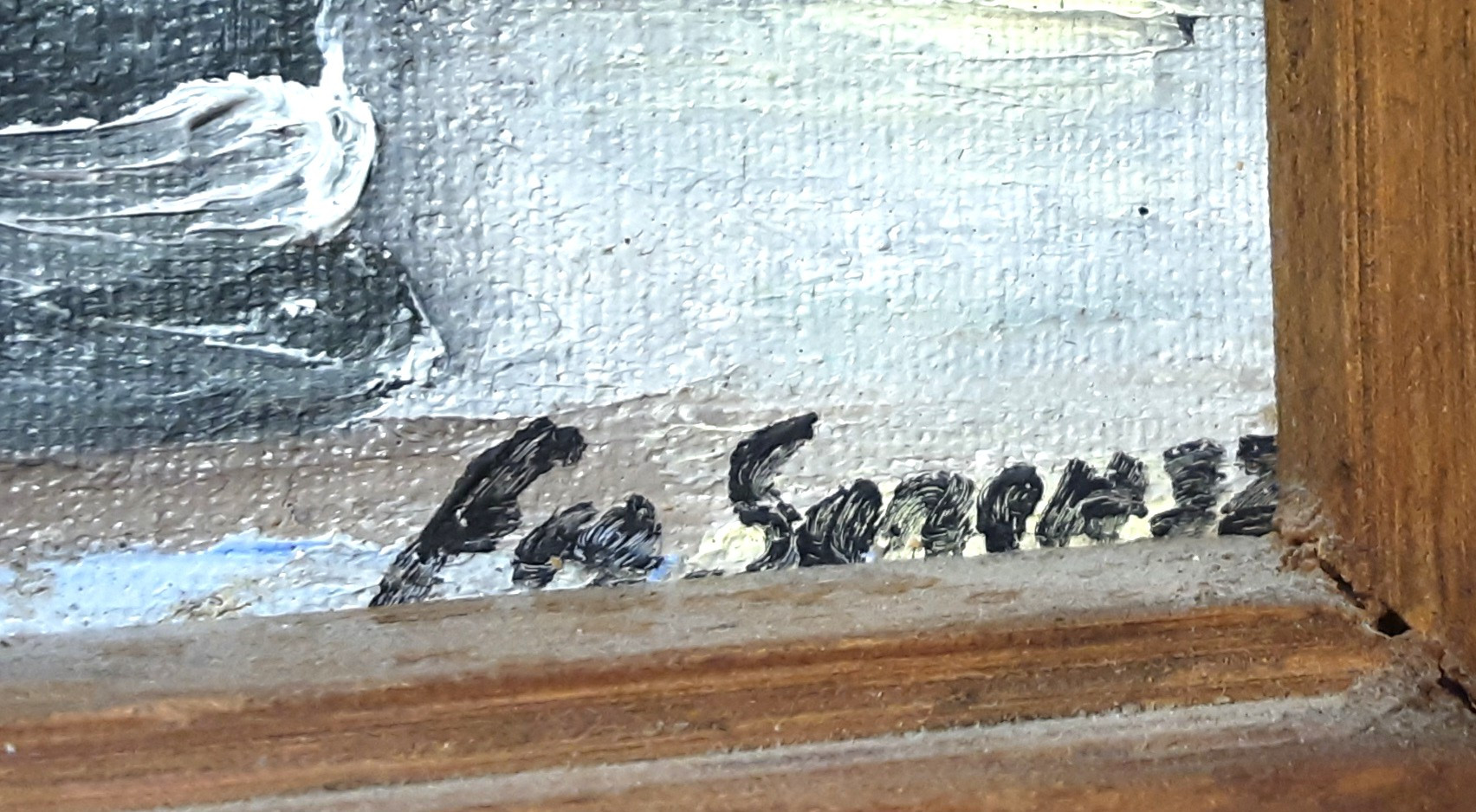 The piece appears to be signed “Fco Sorensz” or possibly “Fco Soarez” or “Fco Sorenzz”. The “Fco” is likely an abbreviation for Francisco, common in Spanish- and Portuguese-speaking countries. However, the artist does not appear in major listed art auction databases, suggesting this may be the work of a regional or folk artist, possibly Latin American, rather than an internationally recognized figure.