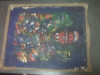 Based on materials (canvas type, paint, nail mounting), the piece likely dates from 1970–1990. The aged canvas and oxidation on the metal nails suggest it is vintage, but not antique (i.e., under 100 years old).