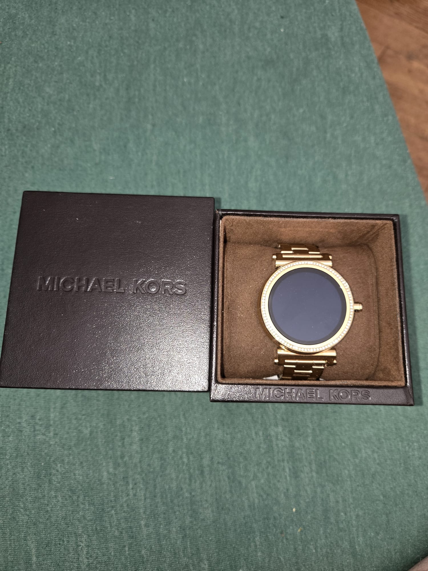 Michael Kors Smartwatch. Made by Michael Kors. Dating to Contemporary. Materials: Metal case, leather strap, electronic components. Estimated value: $150 – $250. Condition: Excellent. The market for Michael Kors watches is currently stable, with moderate demand. Prices for similar items have been consistent, reflecting the brand's popularity.