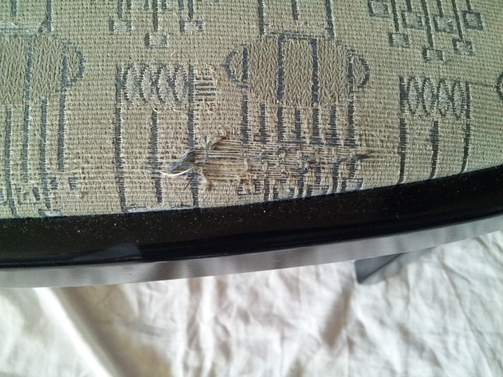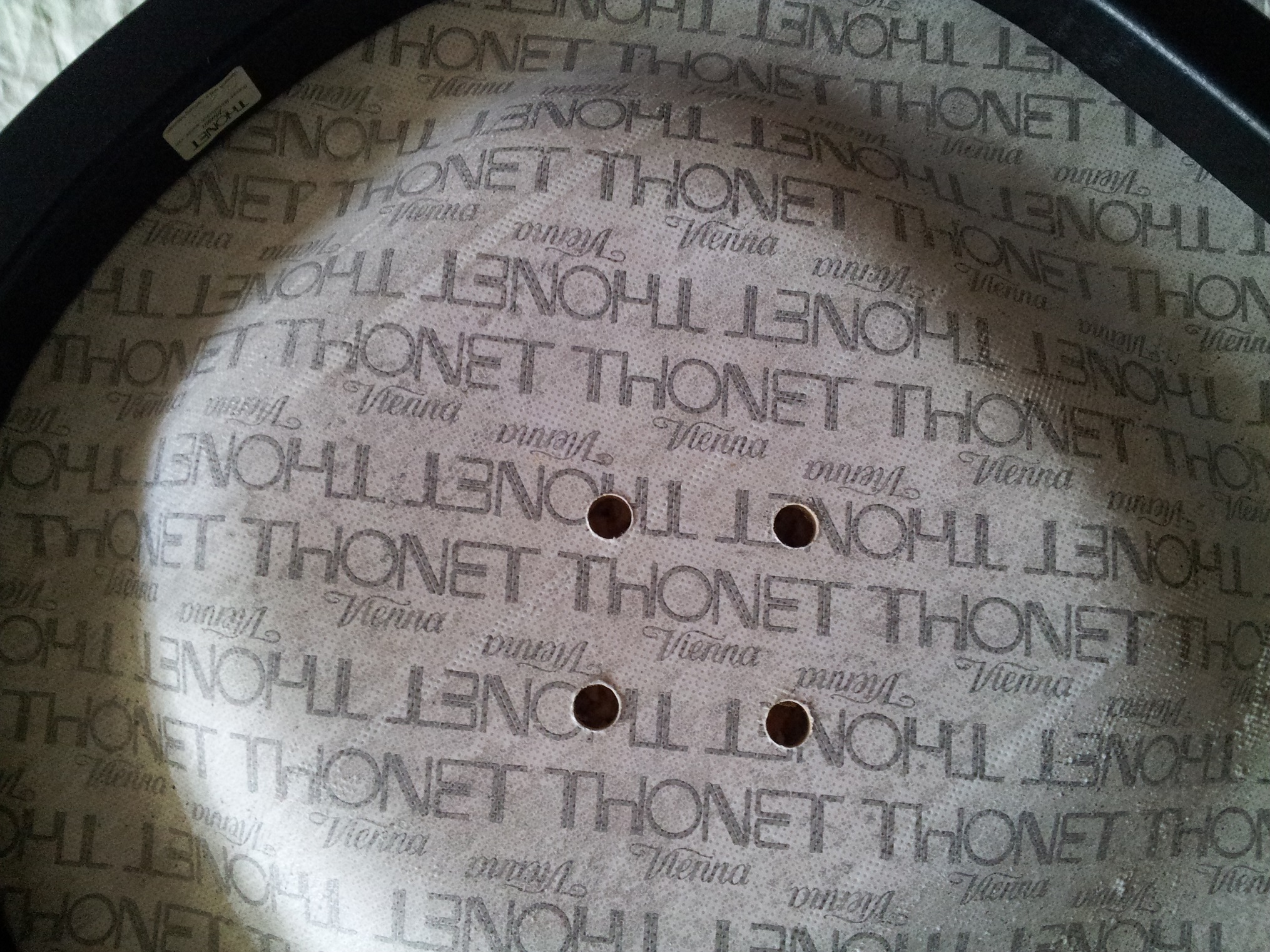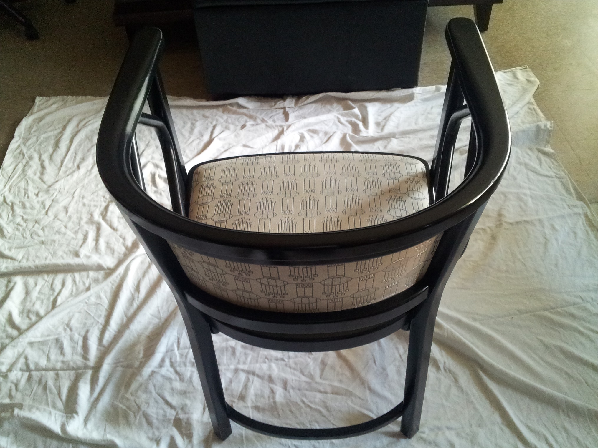 Medium condition. Bentwood with fabric seat and back. Black