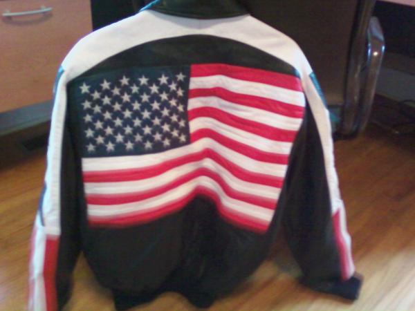 Micheal Hoban North Beach Leather, USA down arms, Flag on back