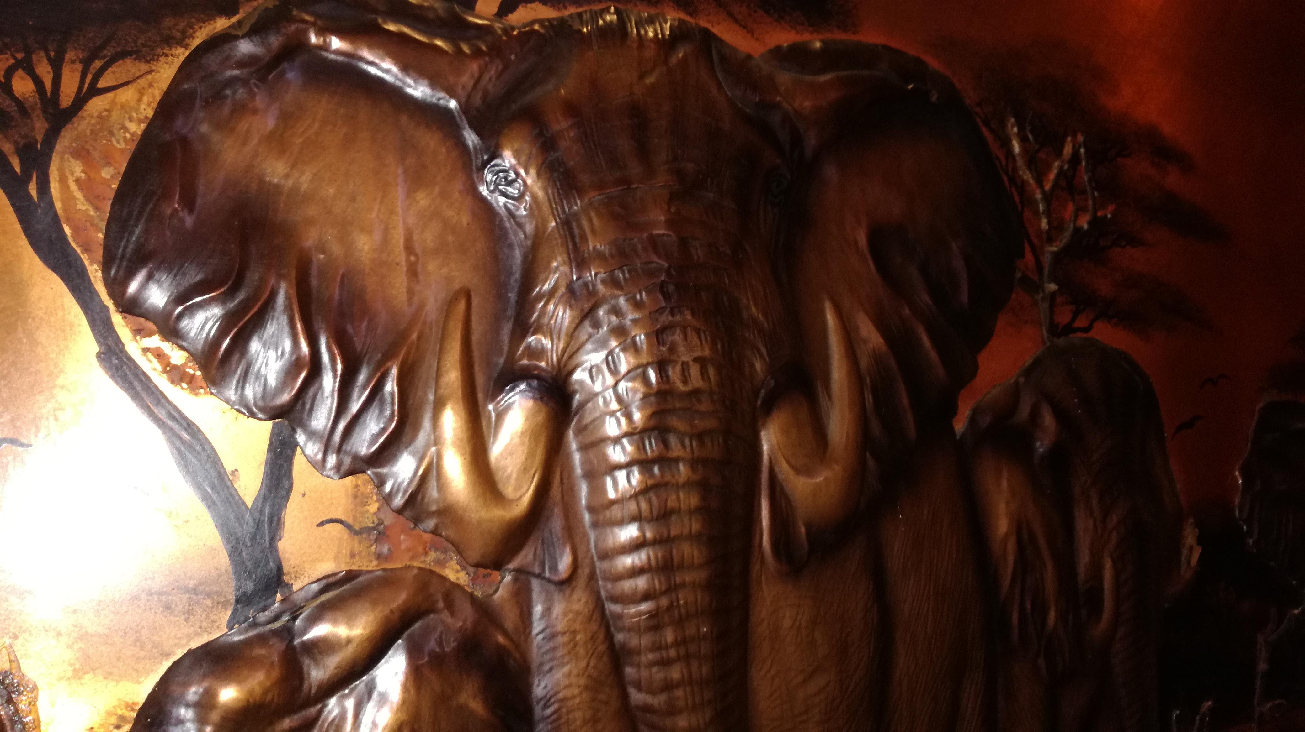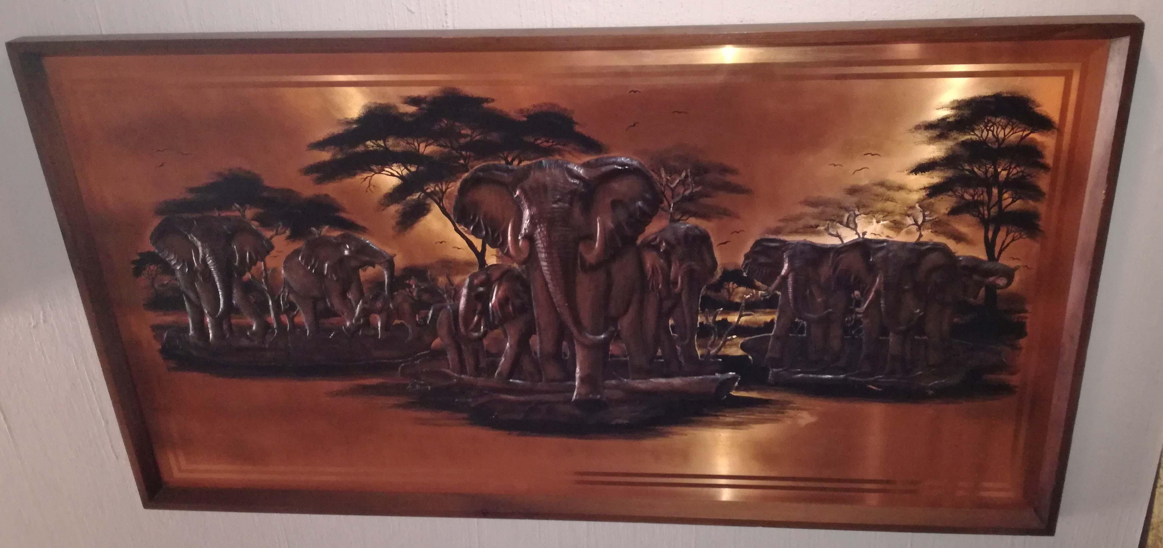 A Michele Original Copper Elephant picture by Space Age Products. Purchased in then Rhodesia now Zimbabwe in the 1970's. Frame Size: 1615x870 Millimetres