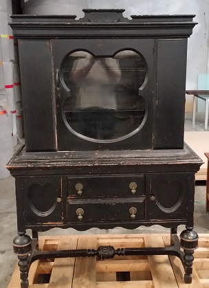 Have this china cabinet that appears to around the 1910 to 1920 era.  The most interesting thing about the cabinet is the front glass opening. It resembles a outline of Mickey Mouse.