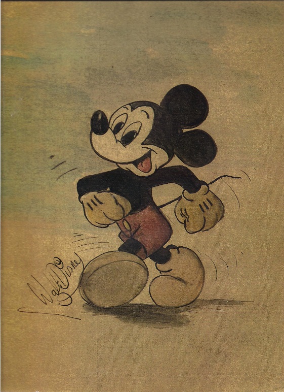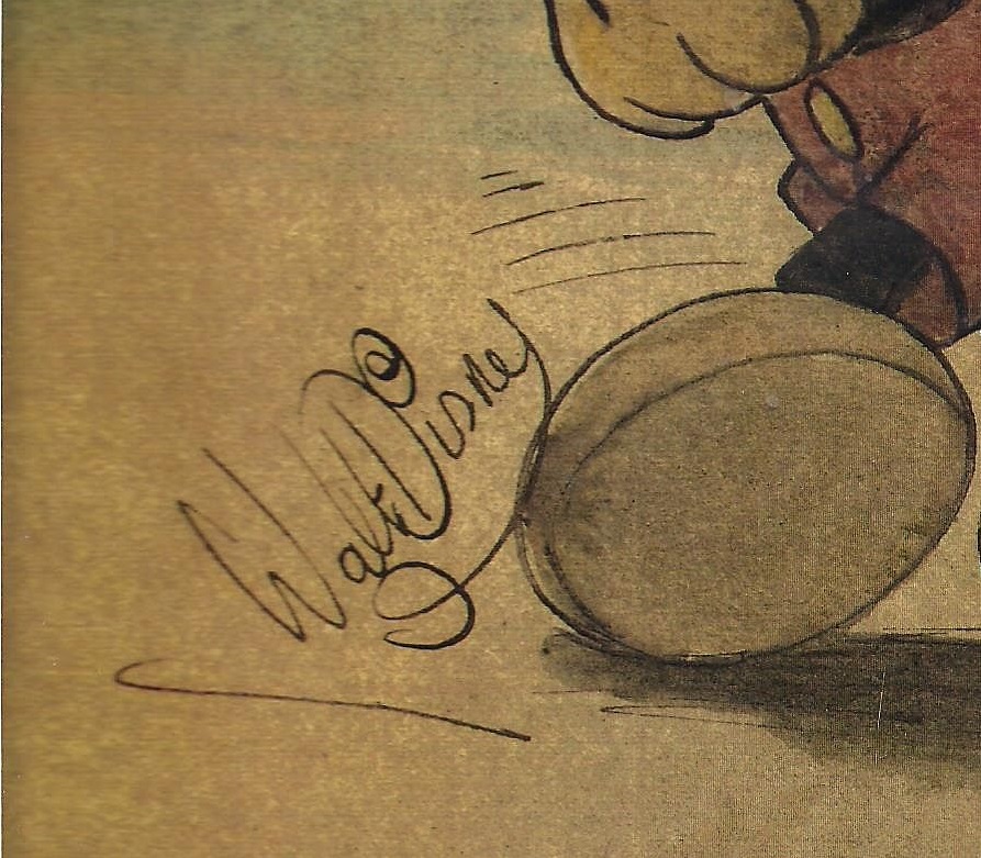 Color ink on paper drawing. Probably not drawn by Disney but possibly "brush" signed by him. Dates possibly from 1946.