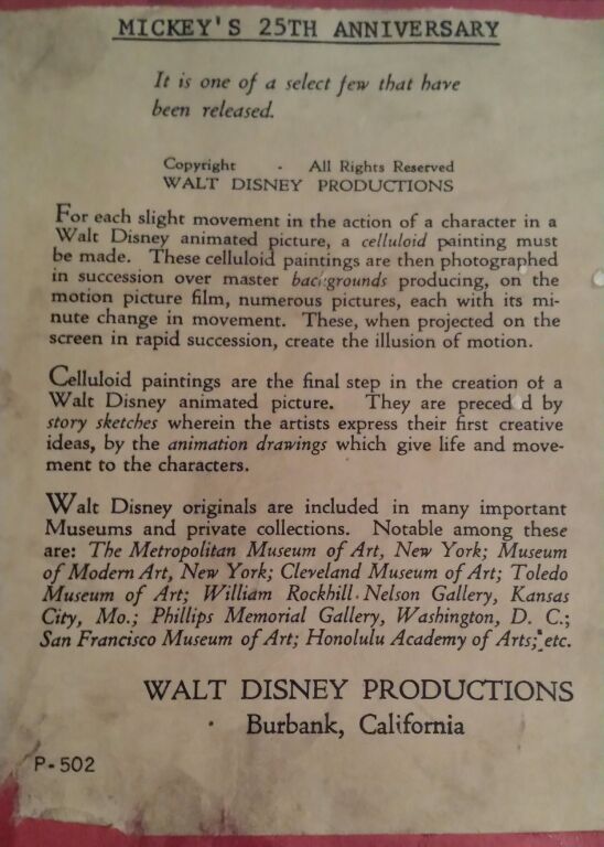 We don't know much about this picture. It was left to my husband by his father whom got it from his father. It is an autographed mickey mouse picture. Signed by many. We would like to find out more about it and what it is worth.