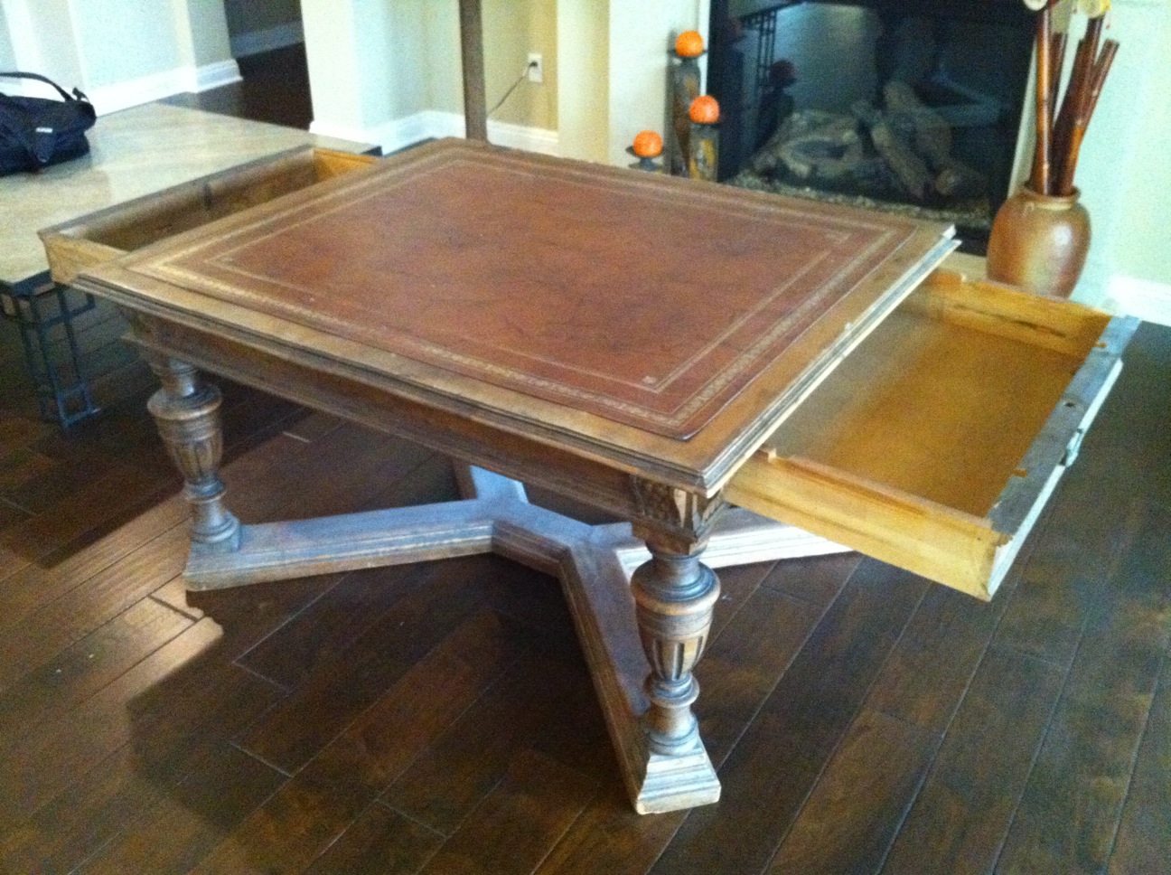 I recently inherited a 19th century leather top Partners Desk from a family friend's recent estate sale in Newport Beach.
