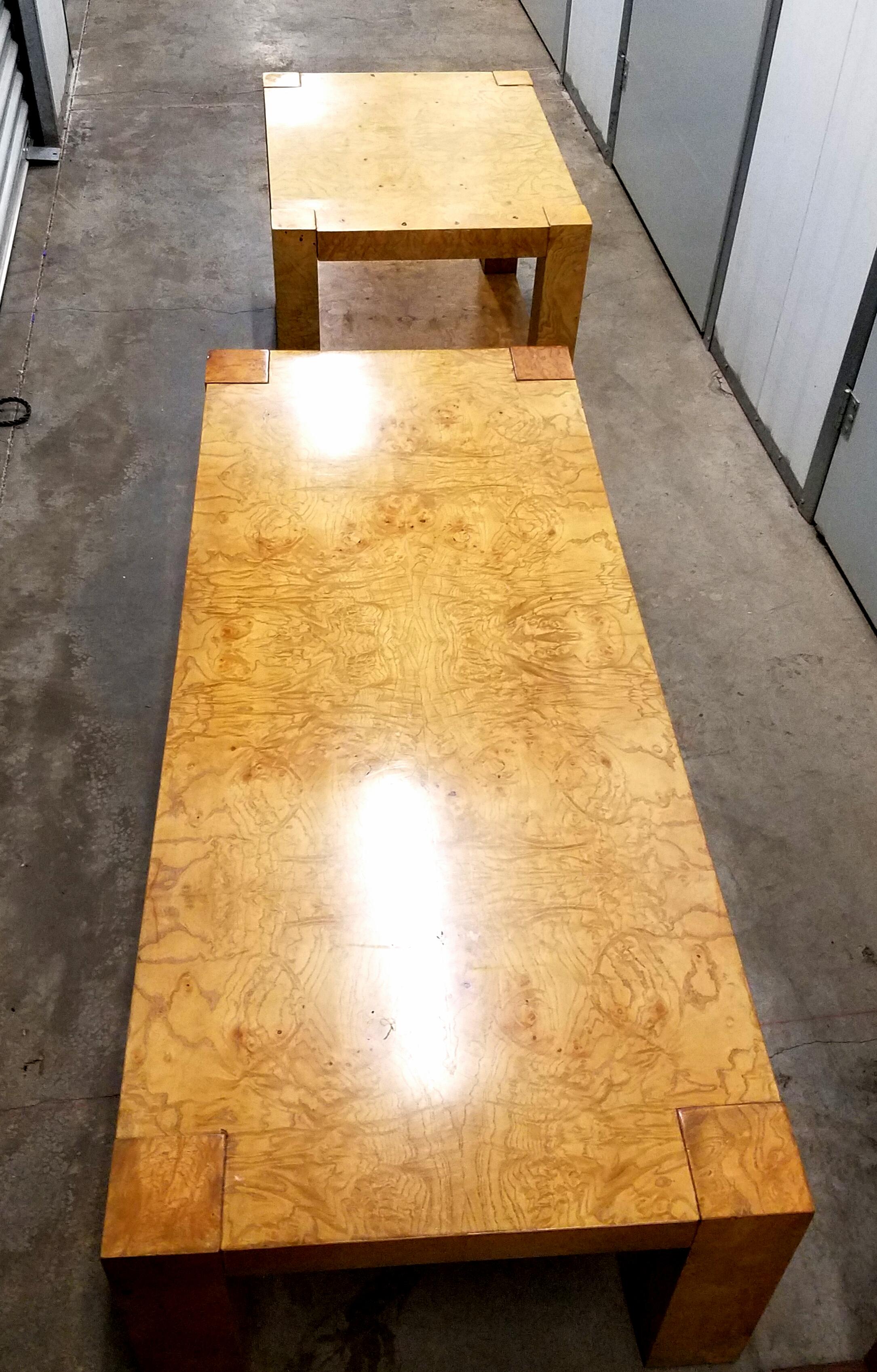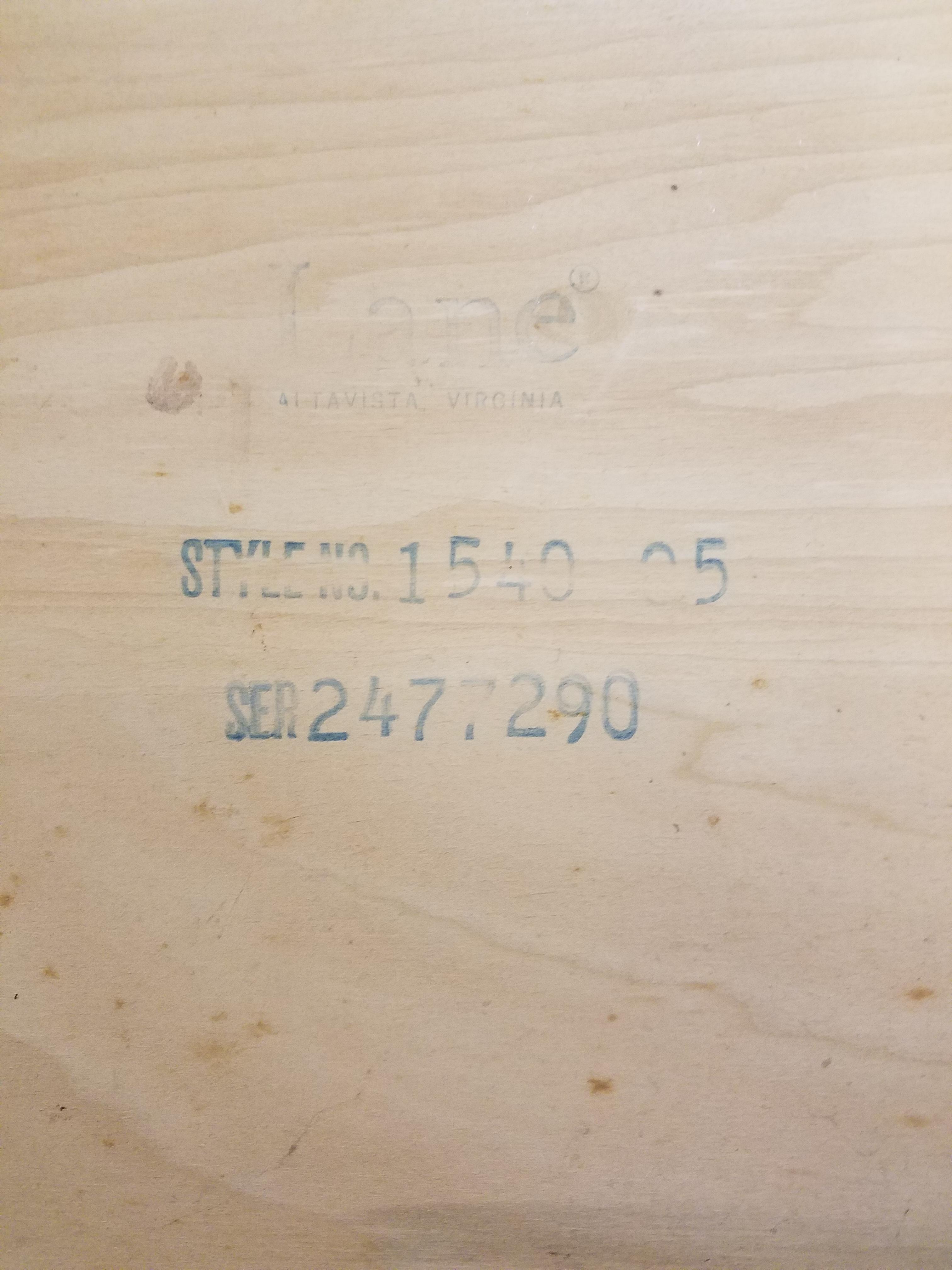 I have inherited a coffee table and matching end table from my girlfriends grandmother who has had it since she bought it in 74 or 75. She has been the only owner. They were both made by lane furniture on 09/27/1974 at factory 2. The coffee table style number is 1540-01 and the end tables style number is 1540-05. I believe them to be made of burl wood and are in excellent condition. From the little I could gather on the Internet myself I believe they could have possibly been designed by Milo Baughman for Lane.