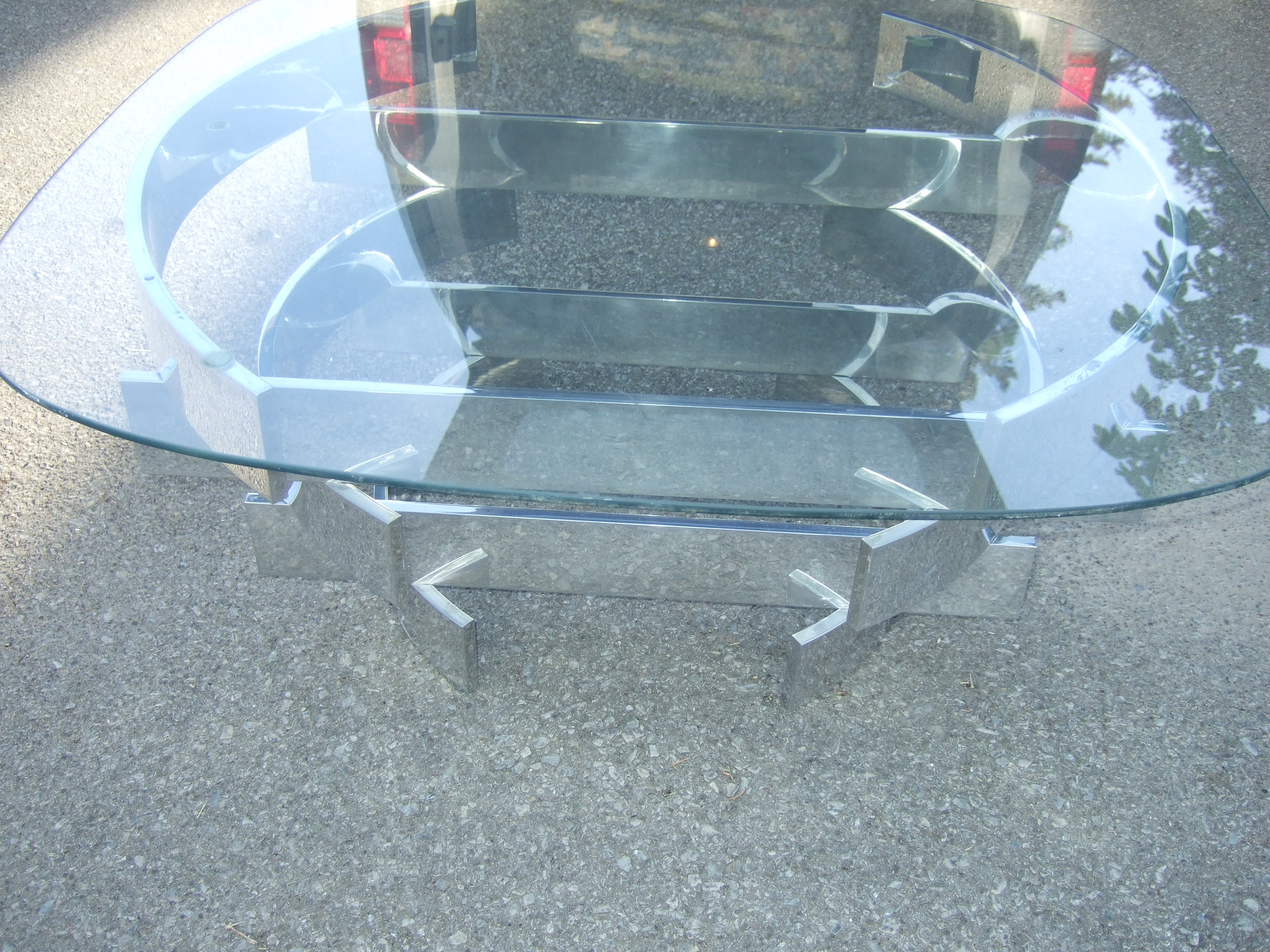 I have a mid-century modern chrome cofee table with a glass top and am interested in finding out it's value.The bottom of the base measures 31.5 inches across by 28 and 3/4 inches wide by 15 inches high. The glass top is squared with rounded corners and measures 36 inches by 35.5 inches in size.