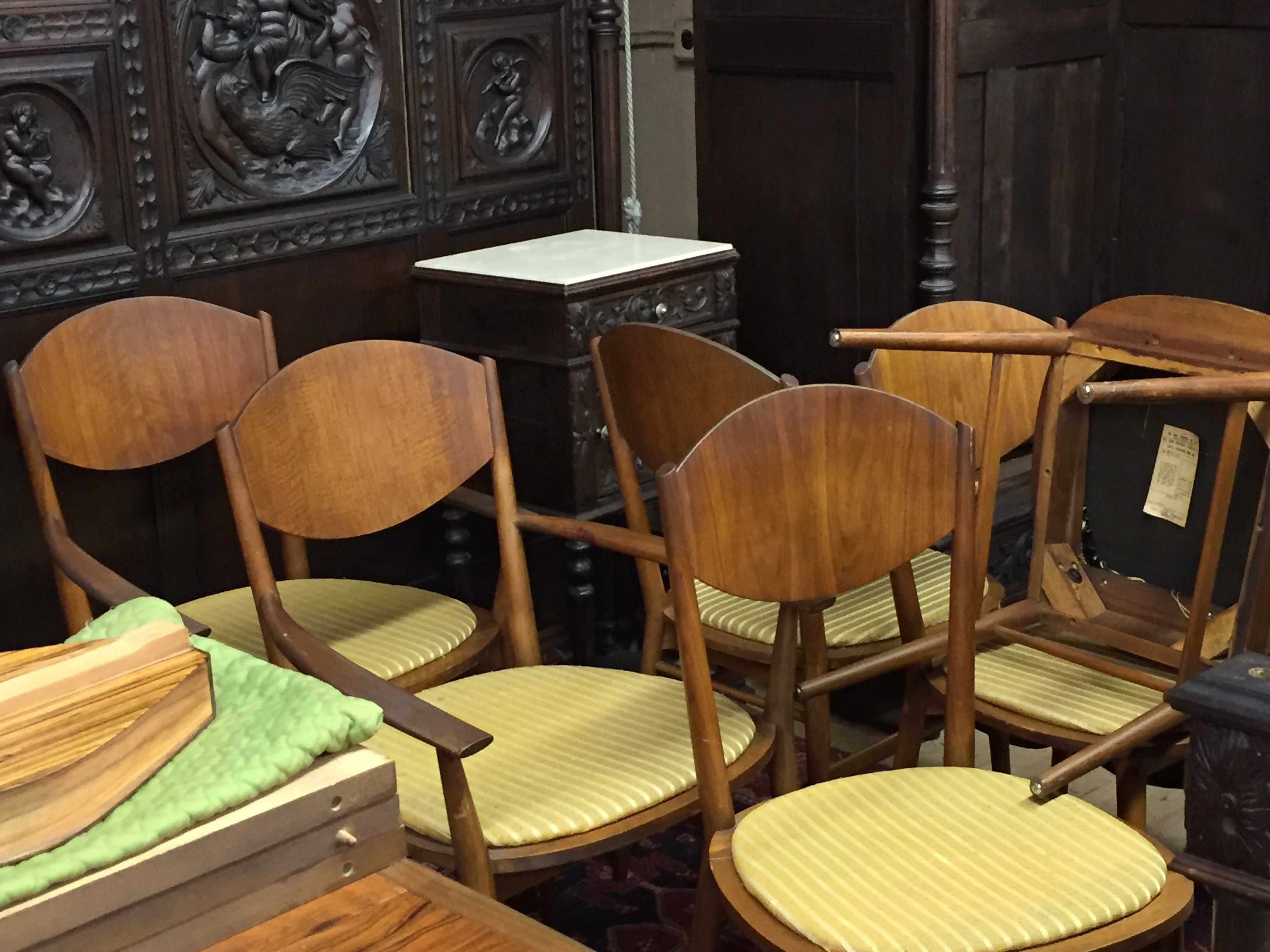 Upholstery on the chairs is not very fresh, but there are no tears or marks.
