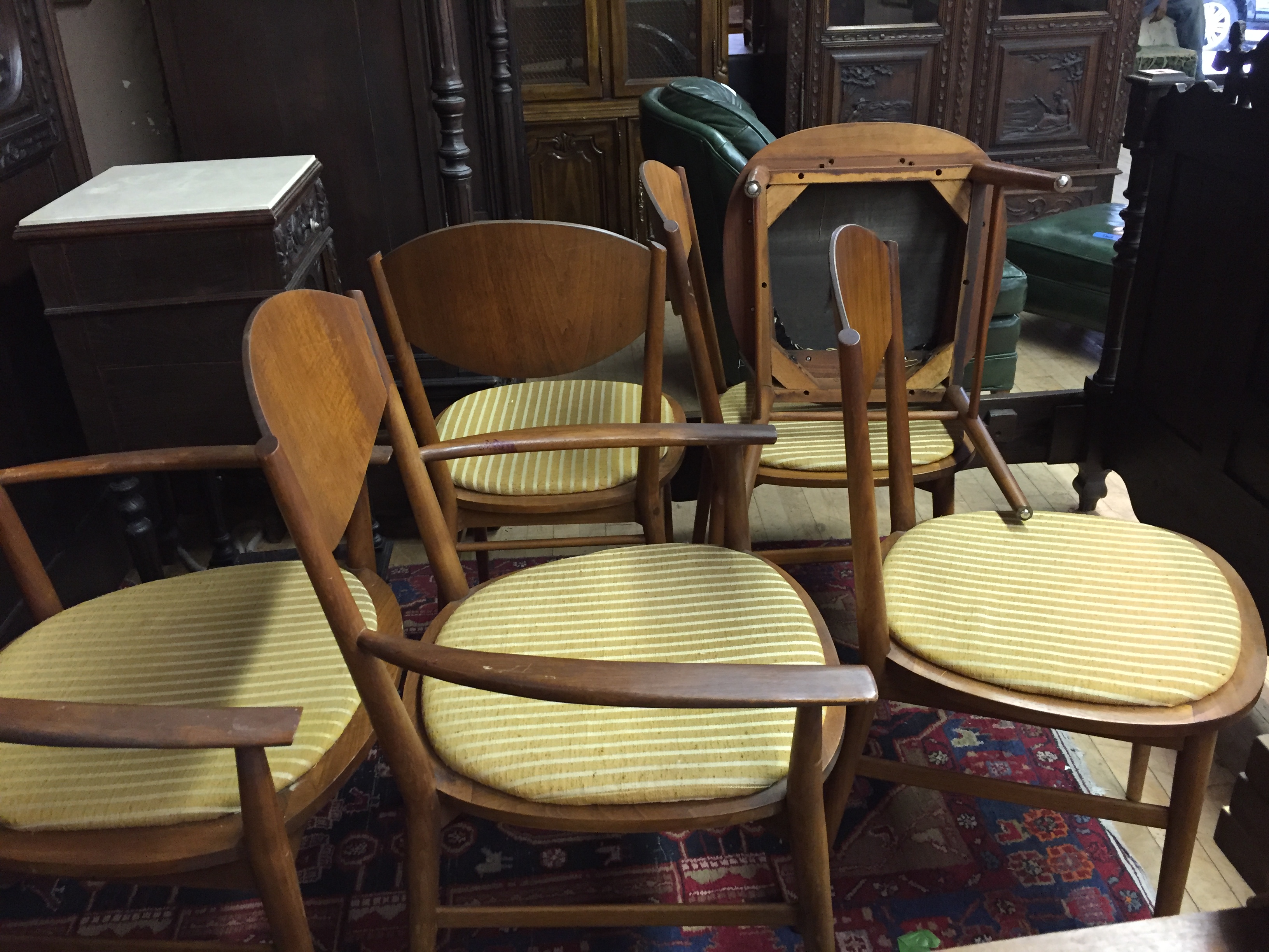 2 chairs with arm rests and 4 without