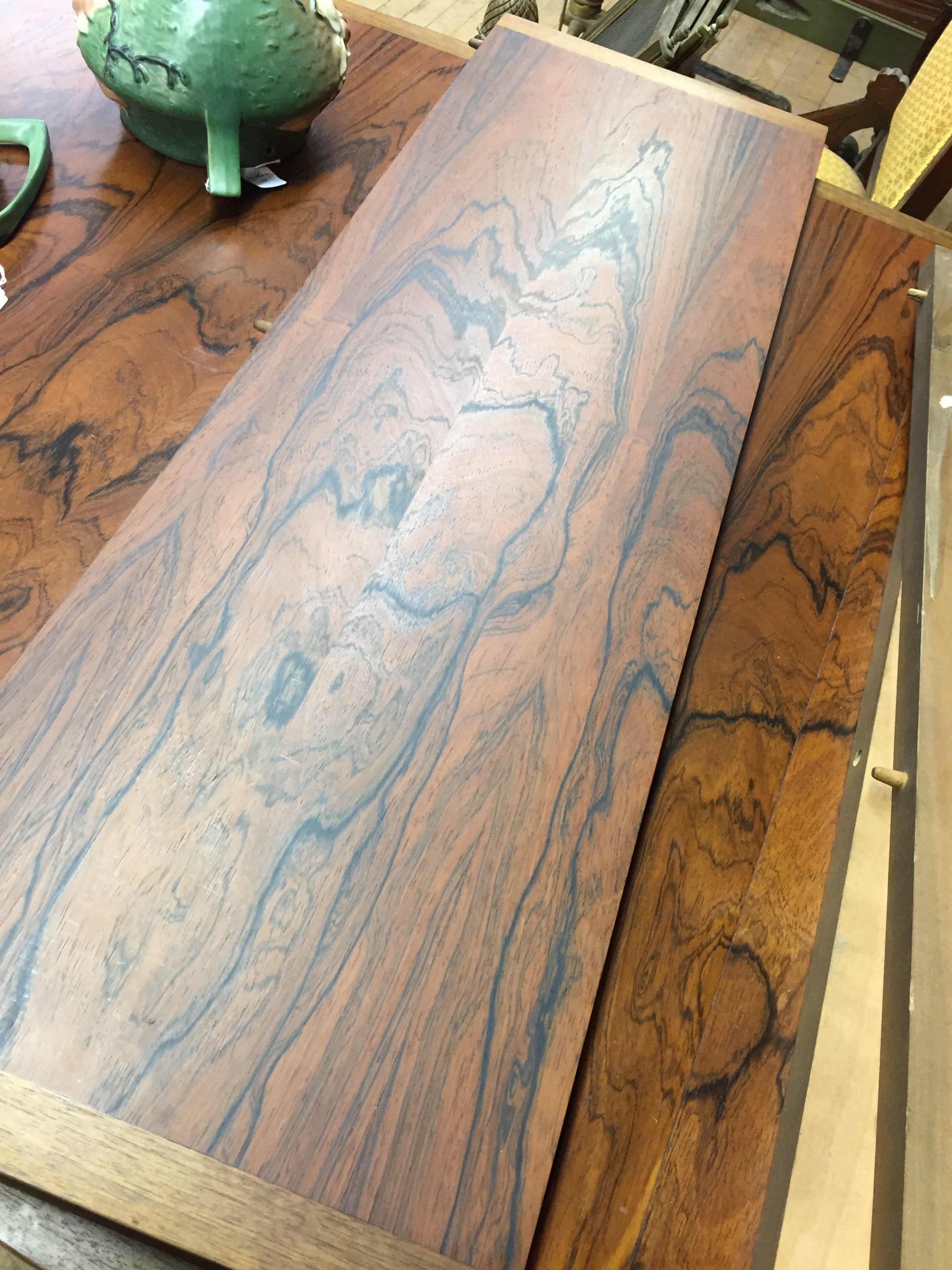 Edge of the table is made of walnut and the rest is out of rosewood.