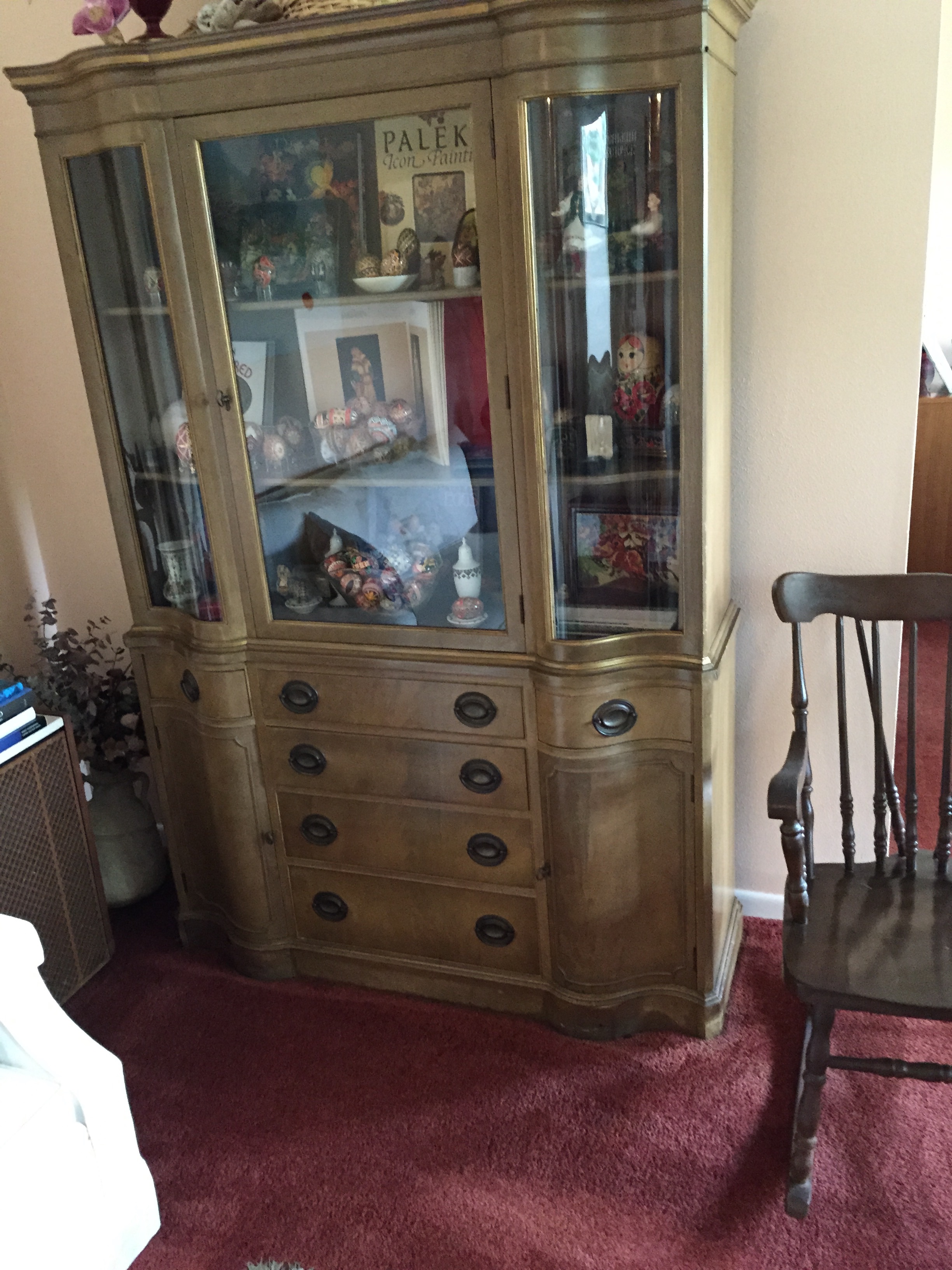 MidCentury Lane Altavista, VA coffee table. Beautifully carved, I believe it is walnut. There are quite a few scratches.