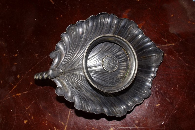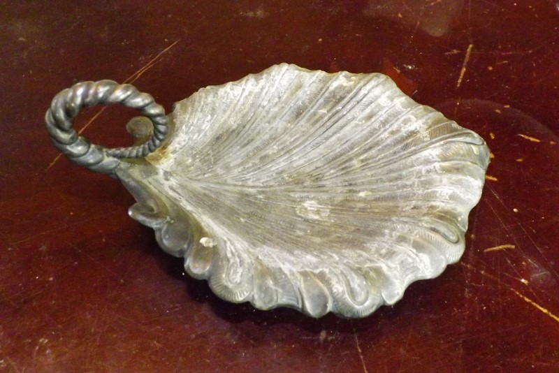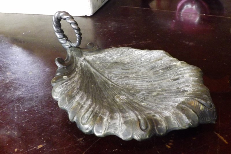 I got this item in a box from an auction and don't know what it is. It's a silver plated "dish" of some sort. It has a rounded handle. It's shaped kind of like a leaf. It is approximately 6 inches long and 4 1/2 inches wide. It is stamped on the bottom MIDDLETOWN PLATE CO. QUADRUPLE PLATE. MIDDLETOWN, CT. It has a scale with the number 5 in it. If anyone could please help me out that would be wonderful!