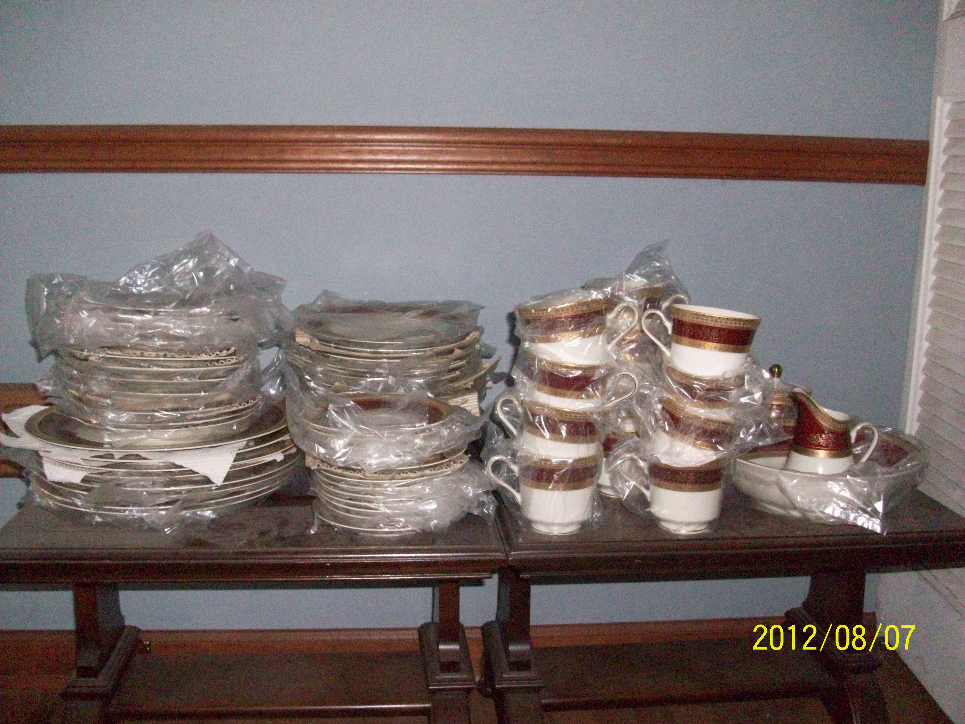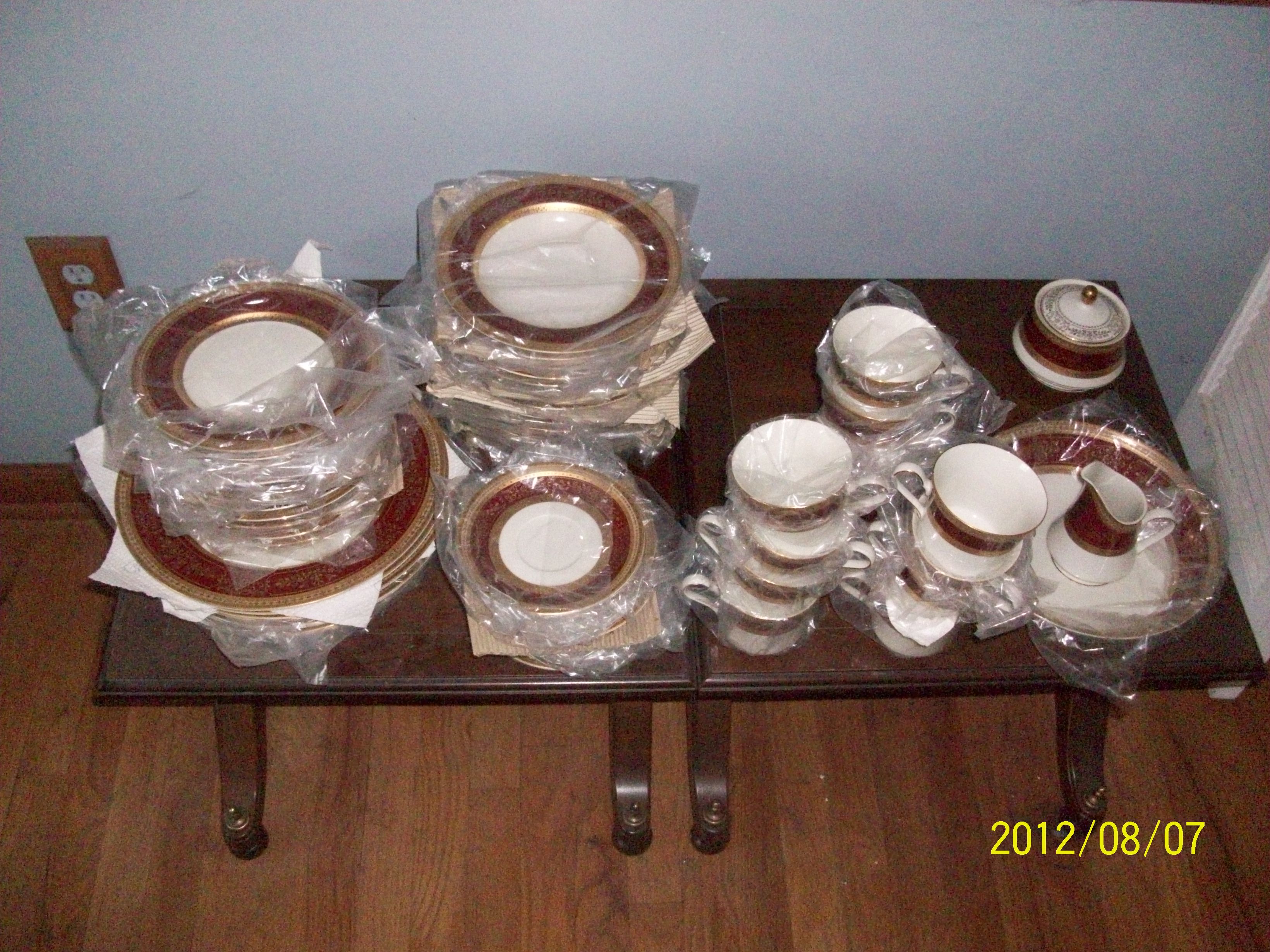 Complete set of gold-trim Mikasa china. Grand Ivory Red L3832. Pictures are attached.