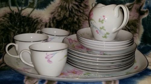 Partial set. No discolorations, one salad plate and one teacup plate has a chip.