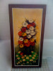Description I don't have any pictures at this time. It looks as if it is a clown or performer with white face paint and a white "cap" that covers his head, he is sitting on a chair, sort of taking a break, with a tired look on his face. In the background there is some sort of musical instrument (like an oboe) or baton leaning up against the wall. The colors are mostly light blues, whites, greys, and some black.
