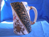 The pitcher has the head of a caribou or moose - something with very large horns that form the top. THe opening for pouring is tha animals's mouth.