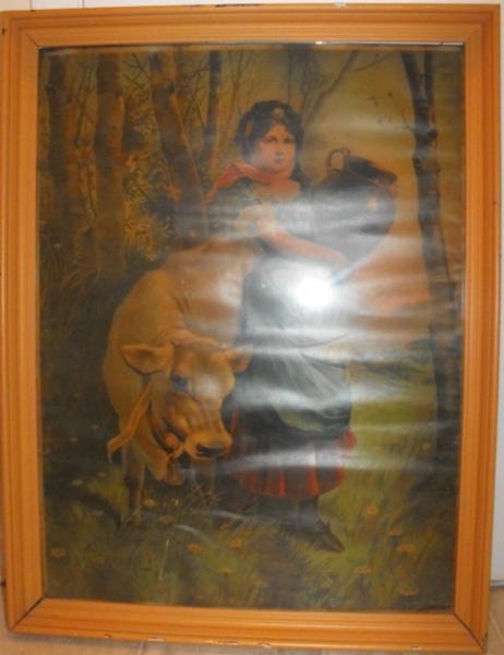 Large original picture frame with glass. Cannot find any signatures. Looks like a poster/lithograph or something. Very old, hand-me down from my grandmother.