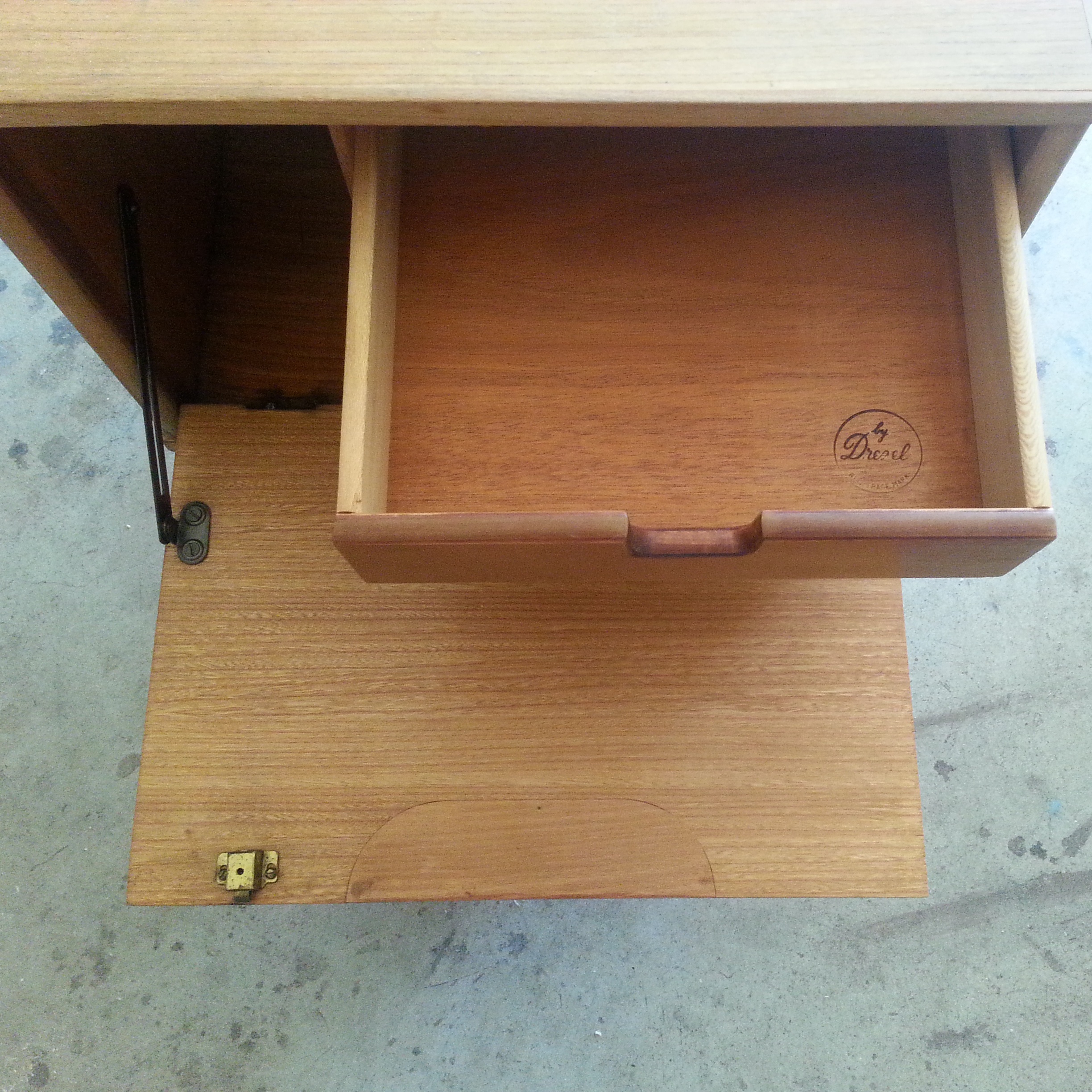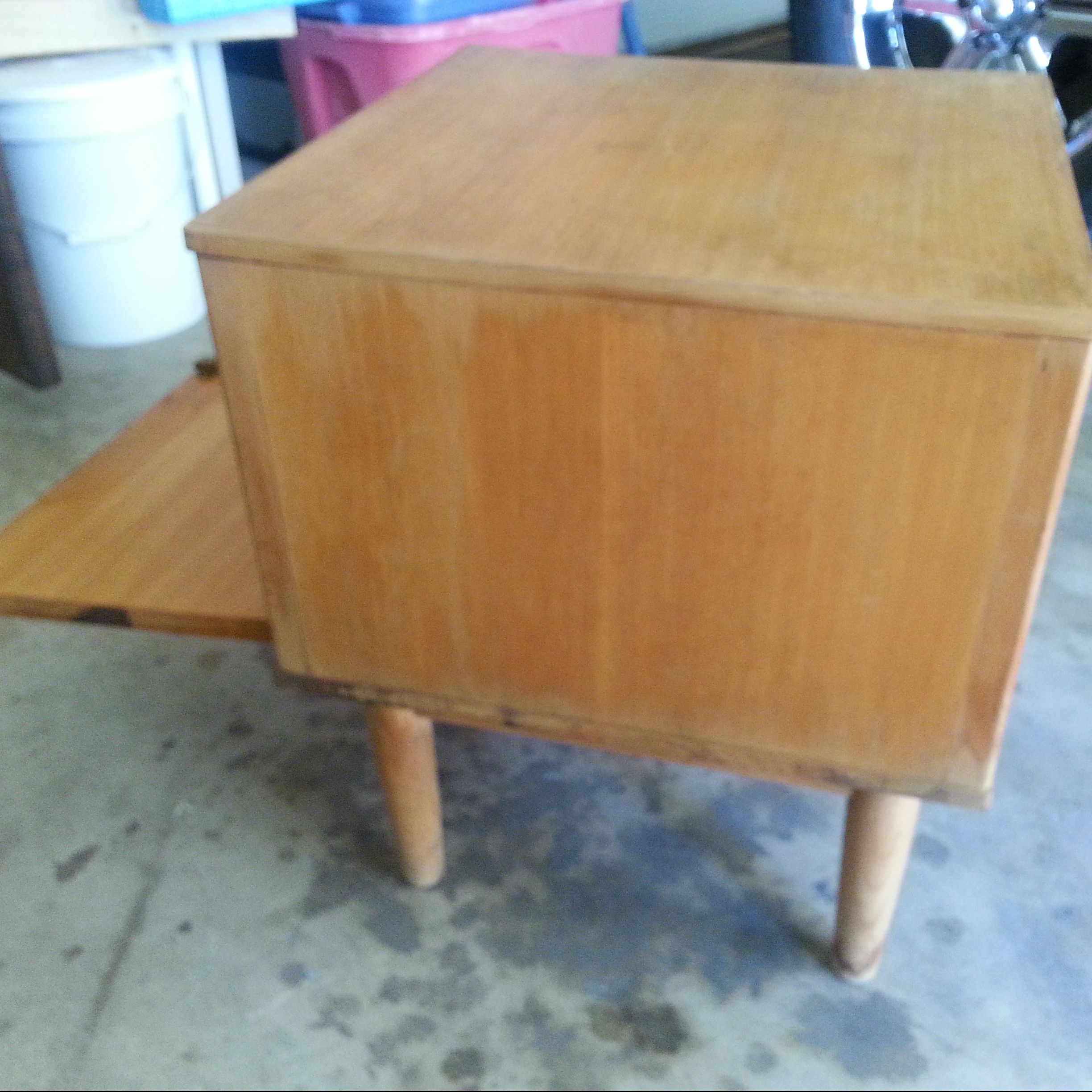 Bought this odd table with intentions of refinishing it, but upon closer inspection, it appears to be rare and valuable. I've learned this vintage piece is from the Today's Living line by Drexel furniture company, and was designed by Milo Baughman. I cannot locate much information on this piece, have seen a pair sell at a high end auction site for an undisclosed amount of money. Can anyone tell me the value of this piece? It is solid wood and is in good condition with all hardware intact.