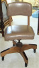 Your office chair is loosely based on the Federal style, ( Furniture based on pieces originally made 1780-1820), similar to "Martha Washington armchairs". Most of these date from the second quarter of the 20th Century, at auction comparable chairs often sell for under $75.00.