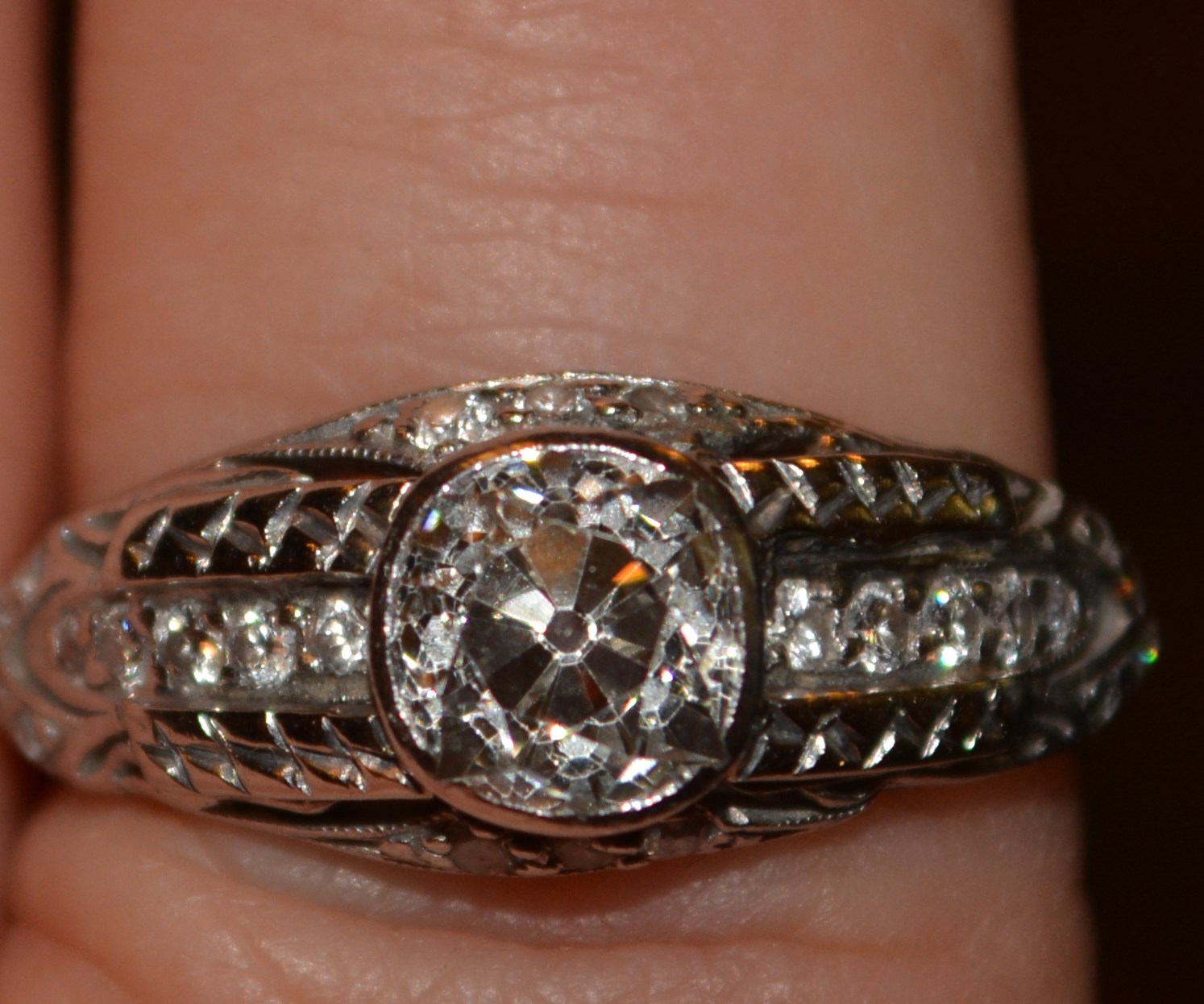 Re: Mine cut platinum diamond ring around 1915