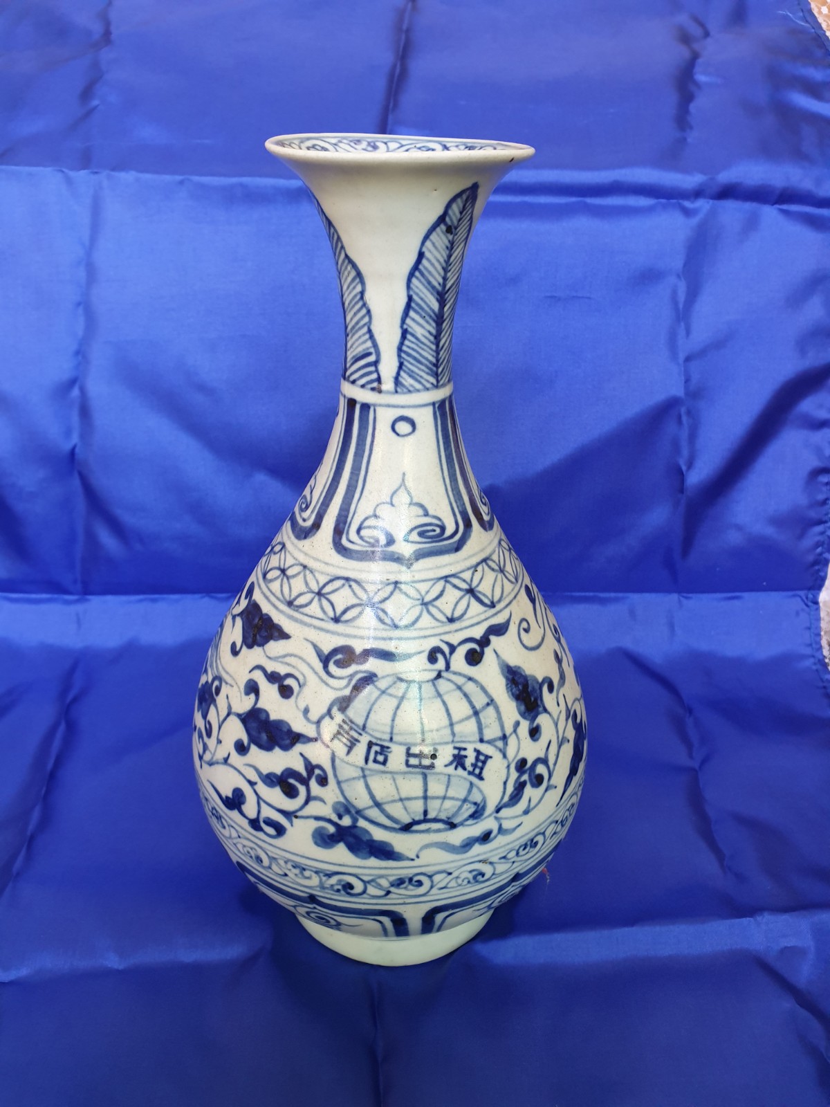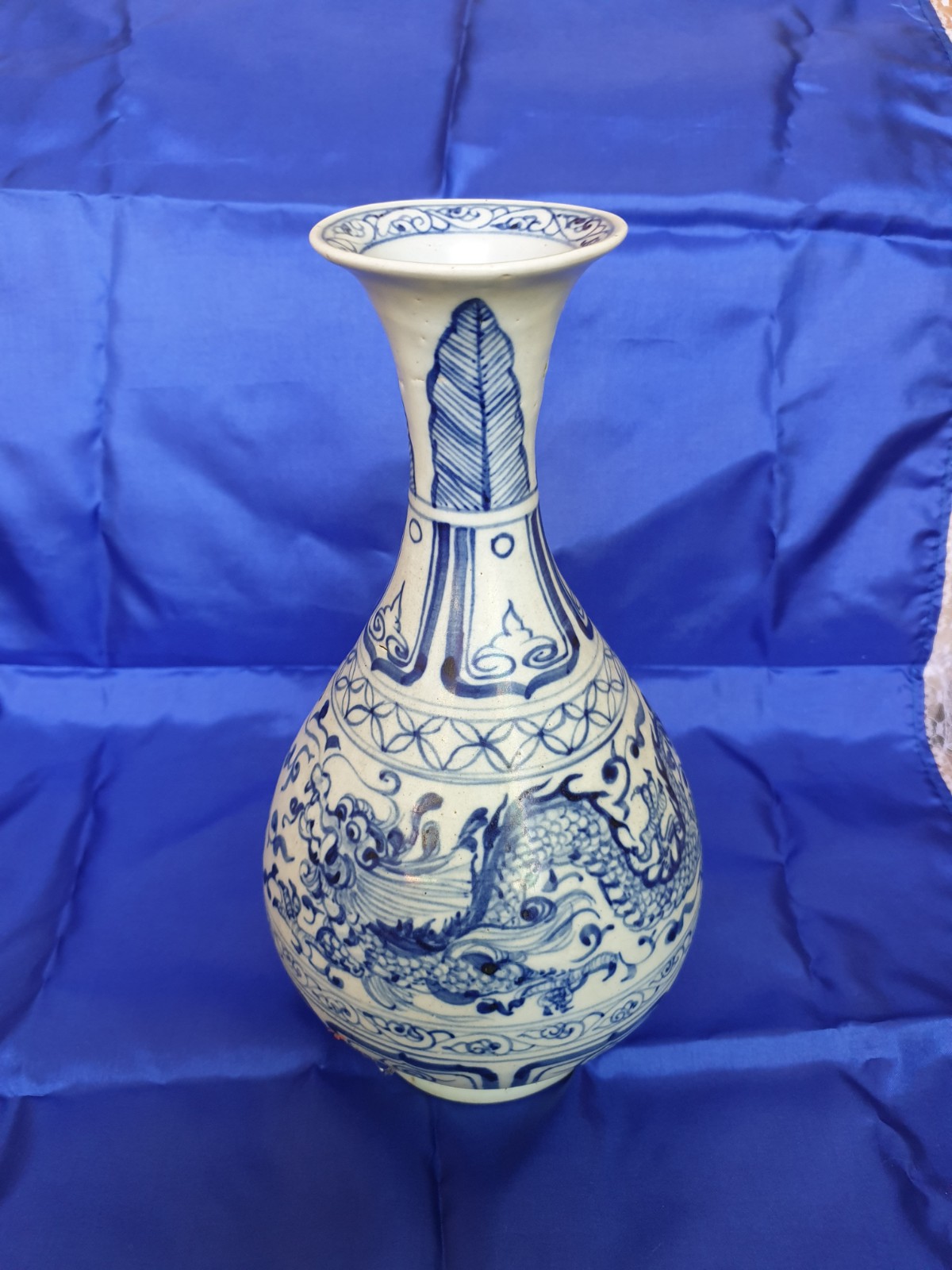 Hello all, my father has this Chinese porcelain vase with globe and dragon design, believed to be from Ming Dinasty. The height is 28 cm with body diameter of 15 cm. Would like to know if anyone has more information about it and how much it worth?