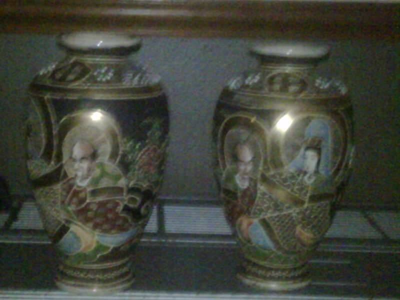 Looks like Ming Dynasty Antique Vases with symbols underneath, but i could be wrong. it feels very special with gold plated colouring and beaded texture