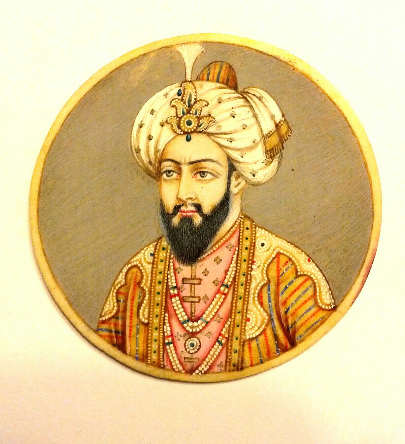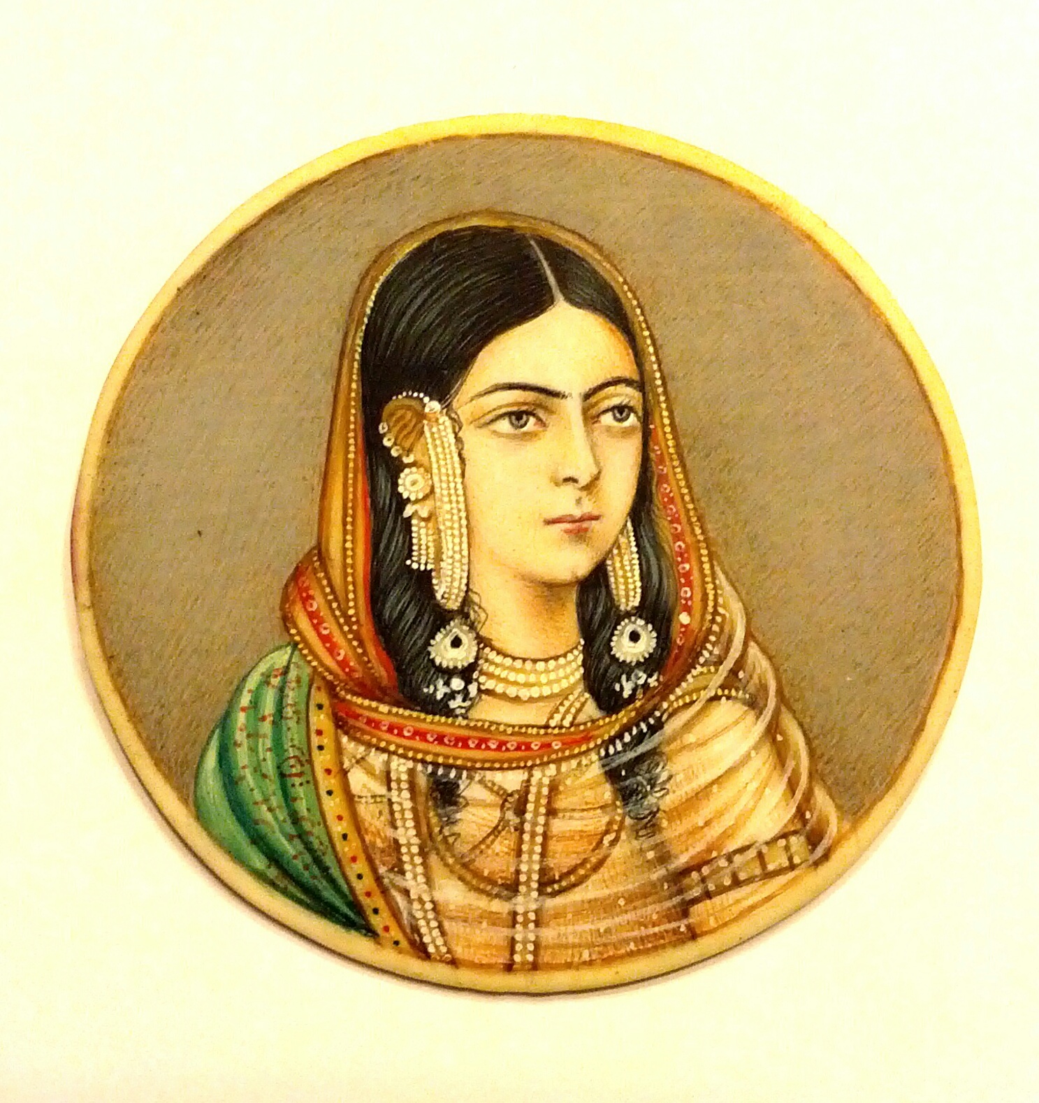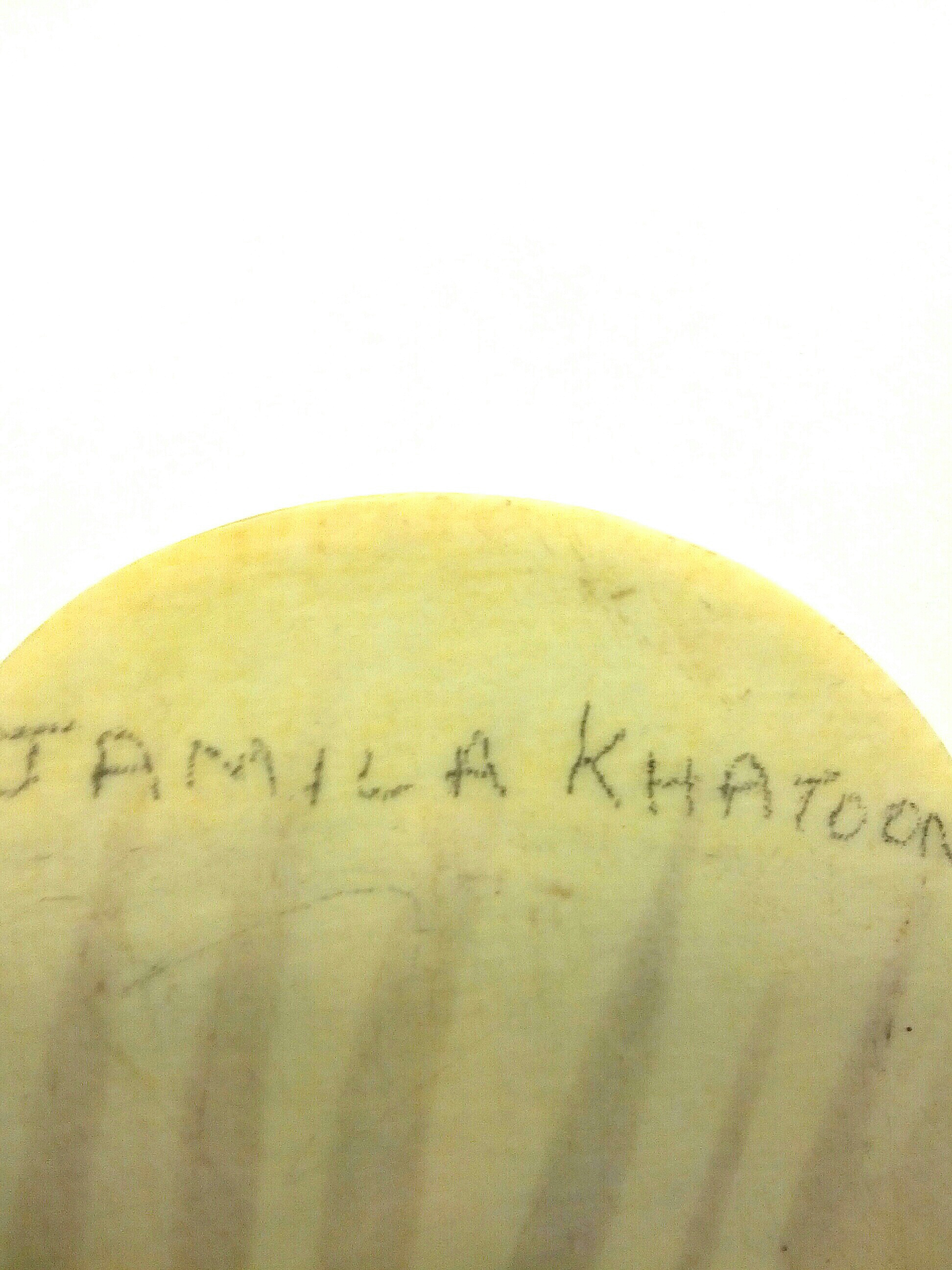 These are miniture paintings, The two circular paintings are 2 inches, And the oval one is 2 x 1 3/8 inches, I am not sure of the age of them or if they are painted on bone or ivory or something else, I do know that they are not plastic, The dark wavy lines on the back of the painting that you see in two of the images come from the packaging that they were in, Each painting is hand painted, I am looking for more infomation on them, If you know anything about these painting's leave a comment, Thanks