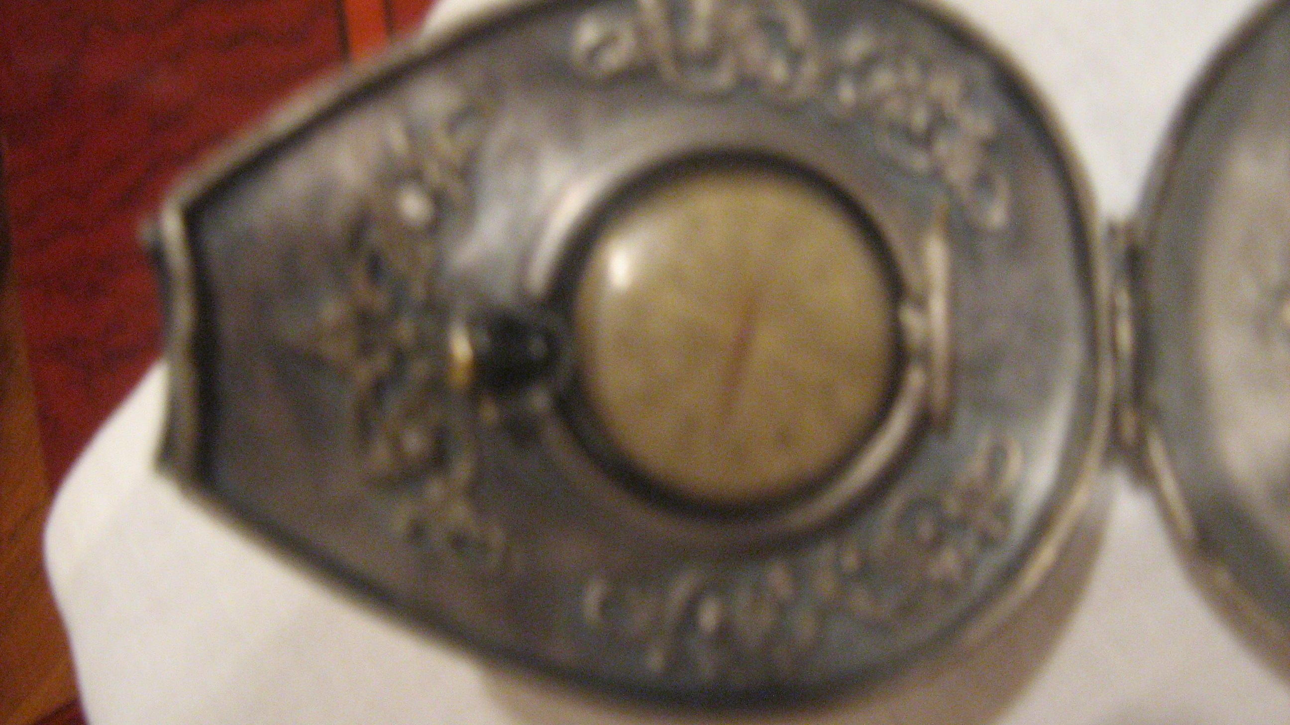 Probably Russian with 84 Hallmark. 19. DC . Watch attached at the middle. openable. probably used for pillbox.
