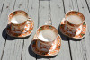 I have 4 matching miniature teacups and saucers. One is red and white with a rose, one blue, one yellow, and one green. They are trimmed in gold with a gold rim on the inside of the cup and on the handles. Can you tell me what their value is?