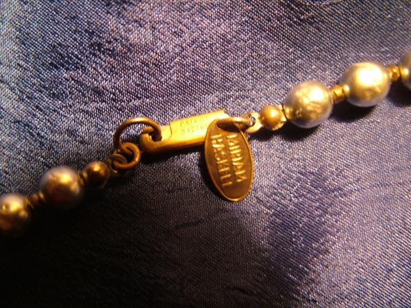 Miriam Haskell oval gold tag and signed clasp with patent # on reverse