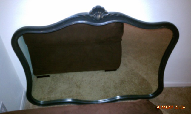 Per the original owner this mirror came off a family member's dresser. It has a vintage, ornate detail on the frame & is very hevy in weight. There is no image distortion. The mirror demensions are 44" wide and 36" high.