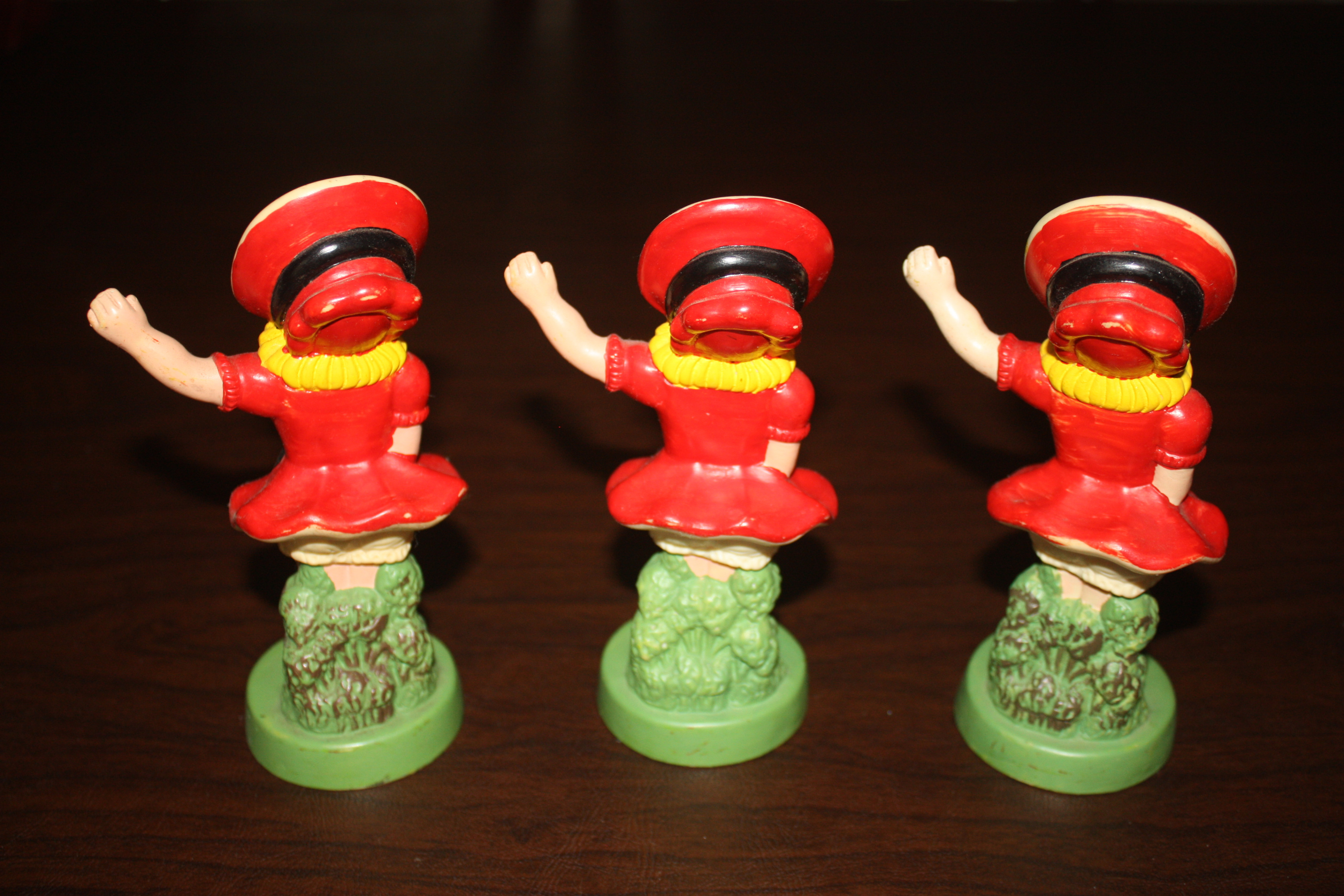 Three small Miss Dairylea statues from the 1960's. Each one is 6.5 inches tall.