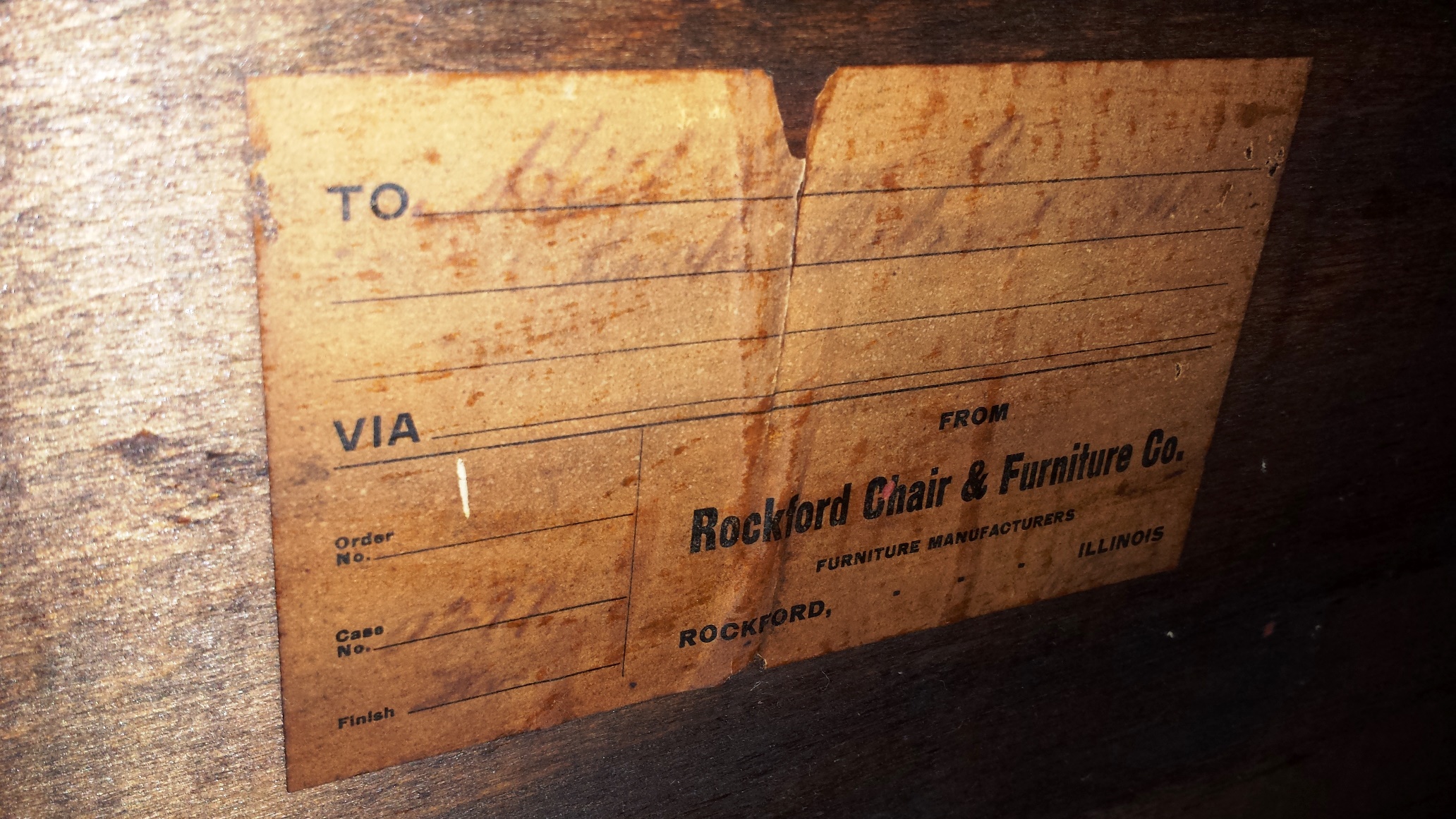 Has sticker on back that stated Rockford Chair & Furniture Co.