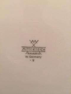 I was given a Mitterteich Bavaria W. Germany plate set while stationed in Nuremberg, GA in 1987-88. I have 6 plates, 4 bowls and 1 serving platter.