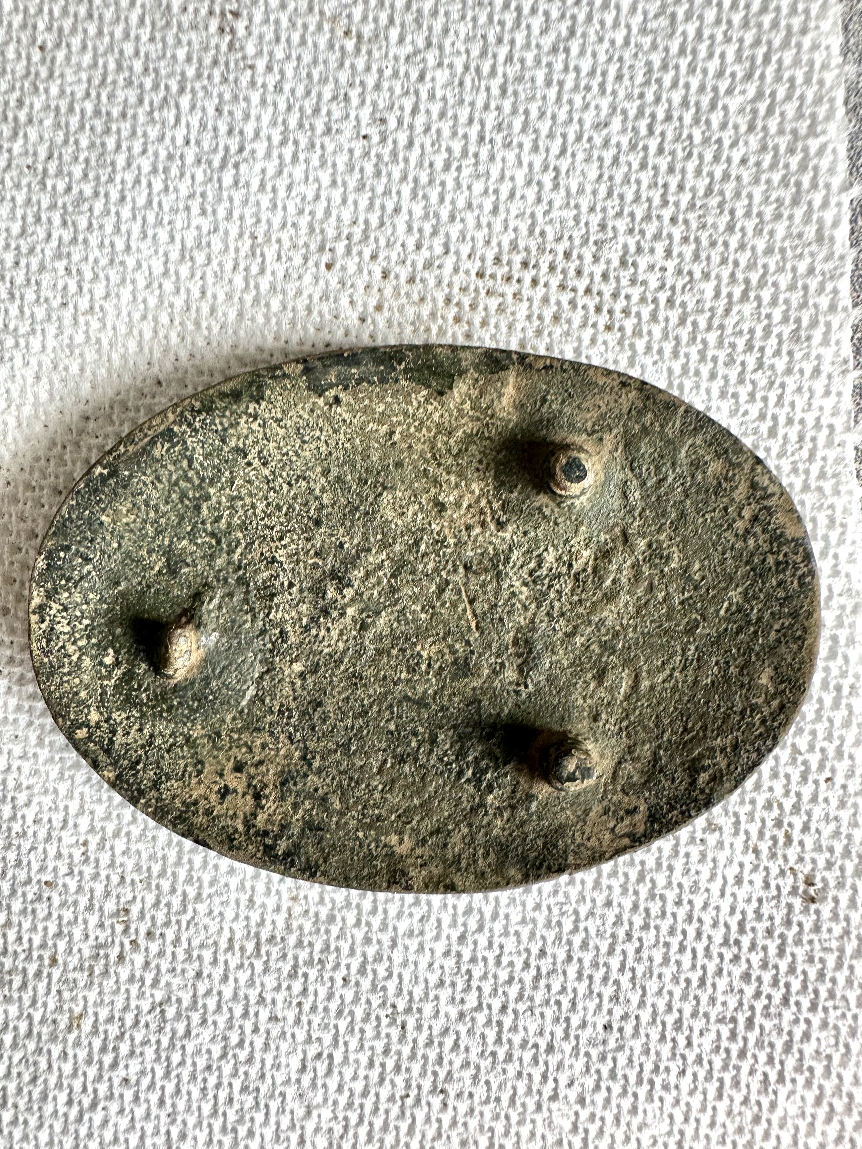 Dug while metal detecting in Central Kentucky. Been told it is a Model 1808 Cross Belt Plate. From my research it appears they were used in War 1812