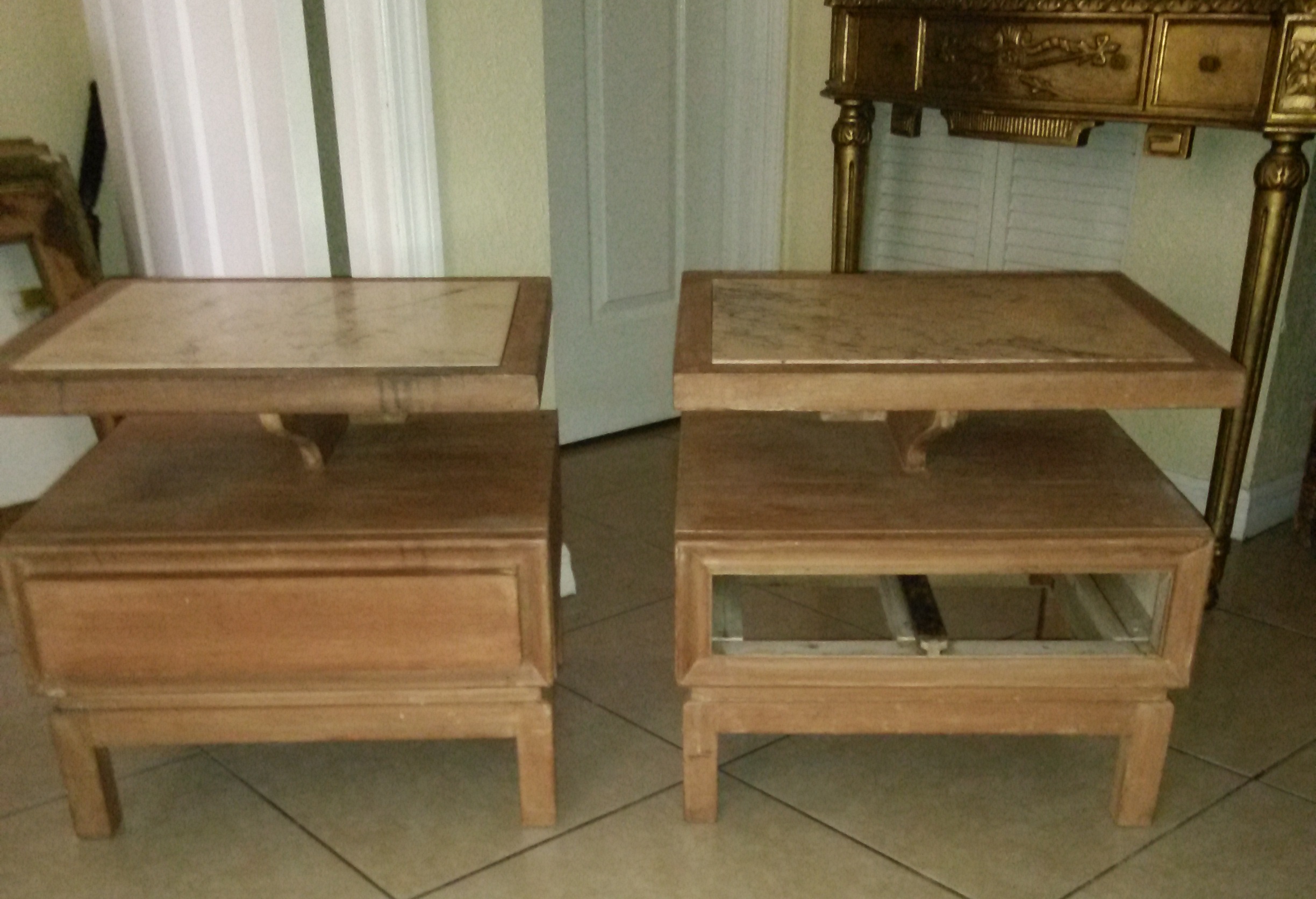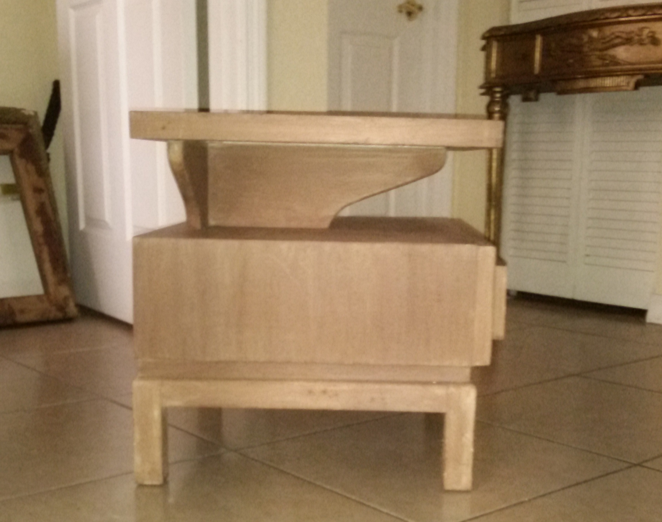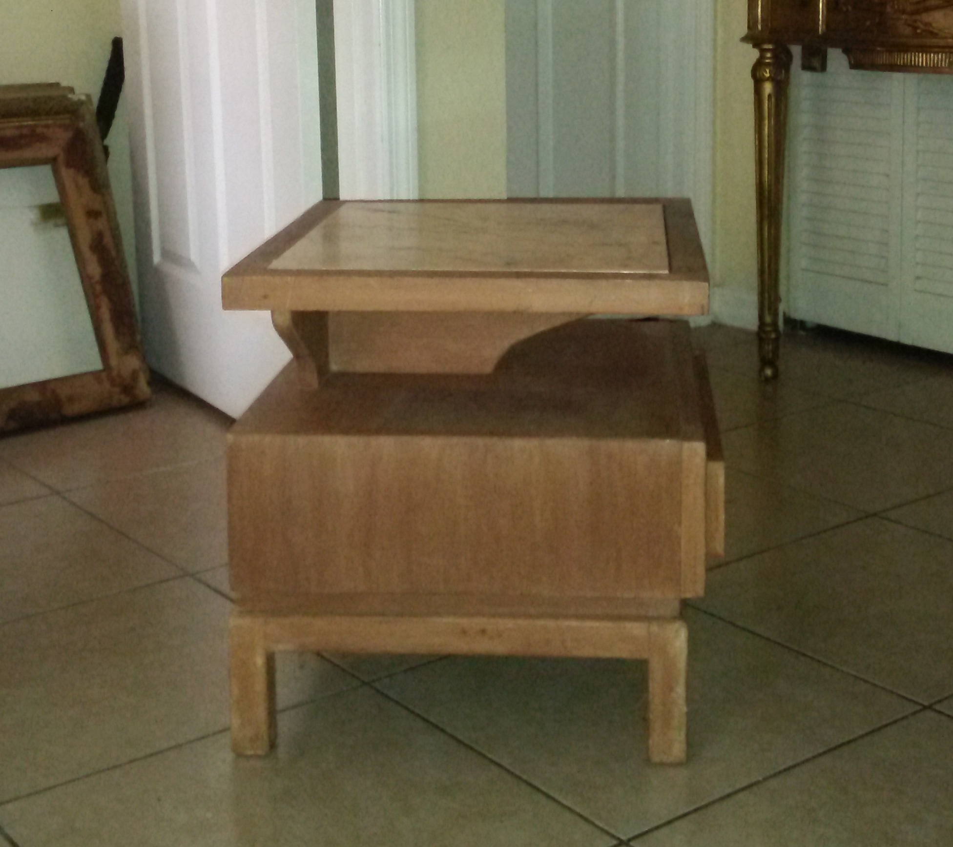 Can you tell me anything about these tables? I know they are modern and made by American of Martinsville somewhere in the 40s or mid 50s, I was also told possible late 30s, is stinciled 3640 N.T. underneath . Heavy structure and has an architectural inspired look and feel, I have not found another sample to compare them to. A few veteran dealers of mid century modern-furniture have said they've never seen any like before, could they be artist designed? or worth having restored? I appriciate whatever information you can add.