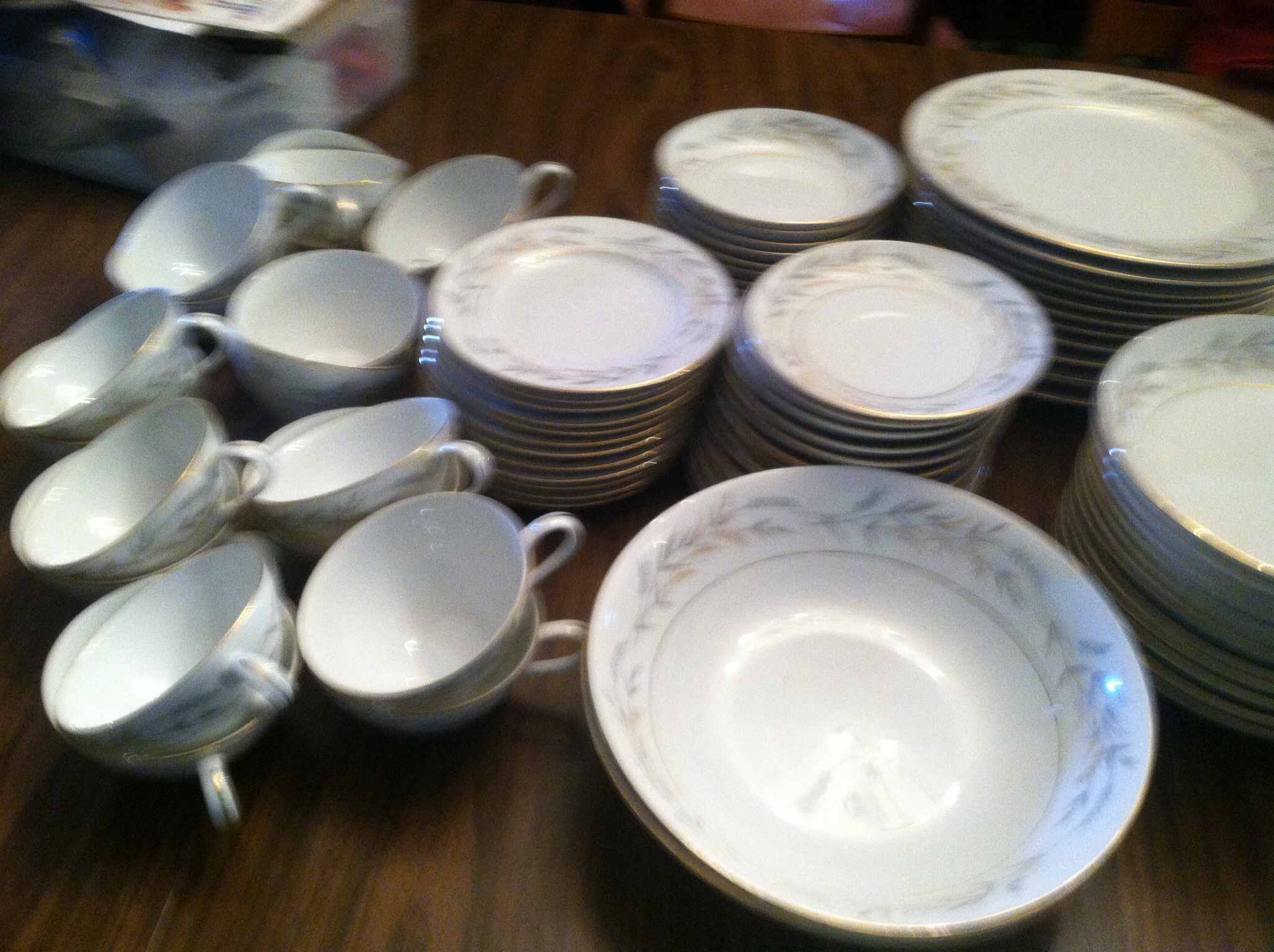 Place setting for 12 . 4 serving dishes.gravy boat with creamer and sugar bowl. Handcrafted modern wheat japan #8622