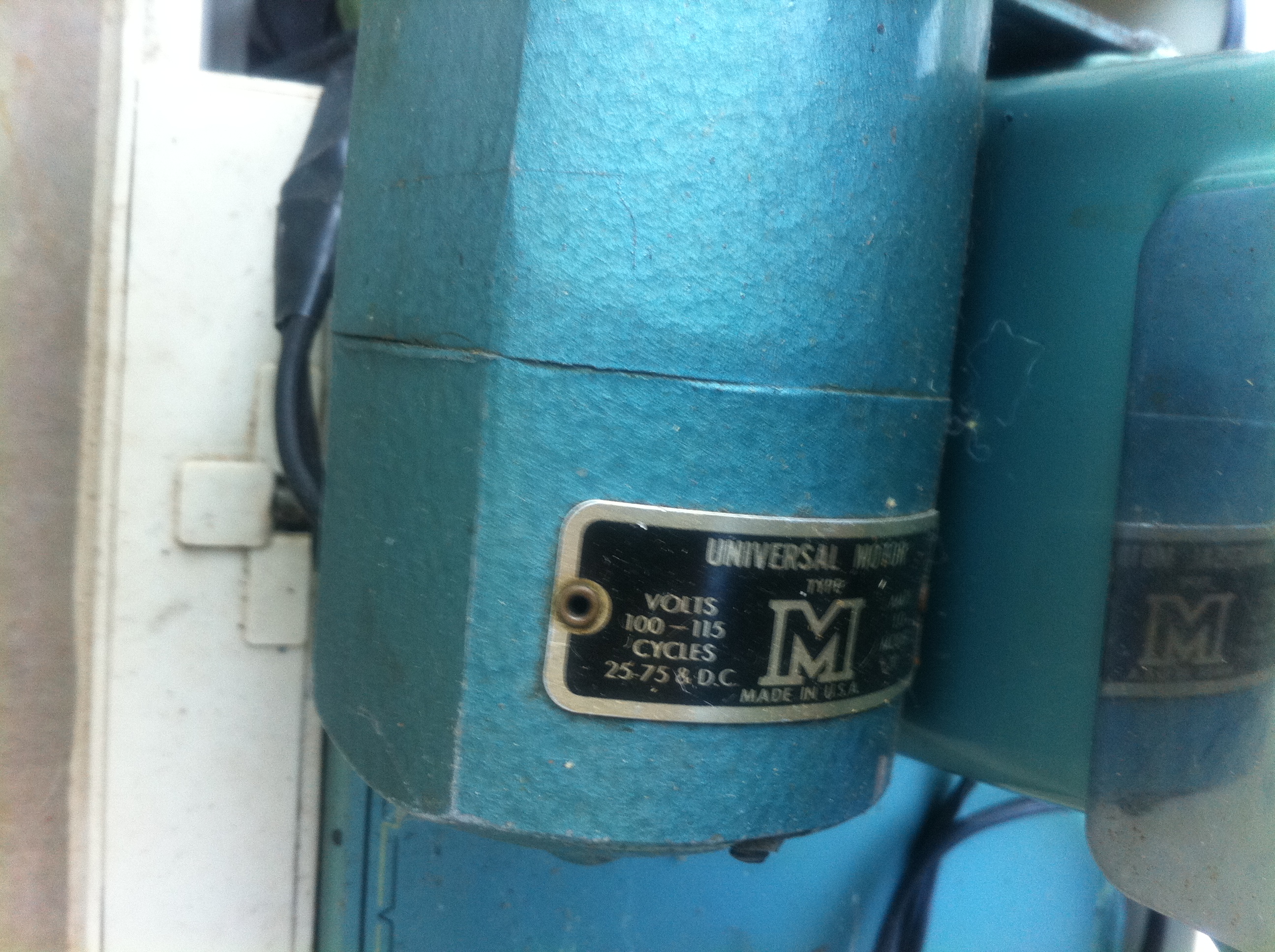 Distinguishing marks red "modernage" plate, blue machine, has a plate that says super de luxe on front lower right hand side