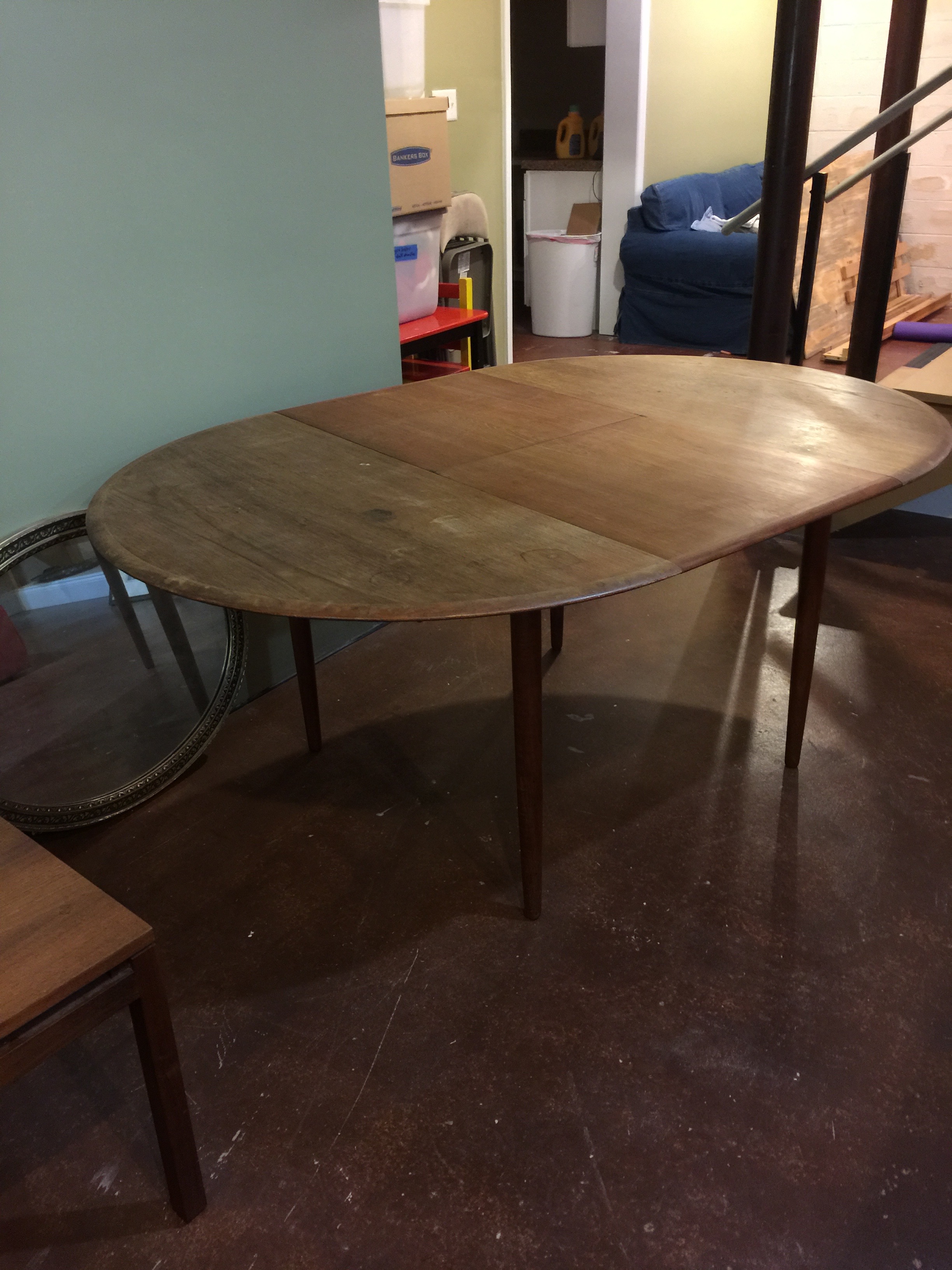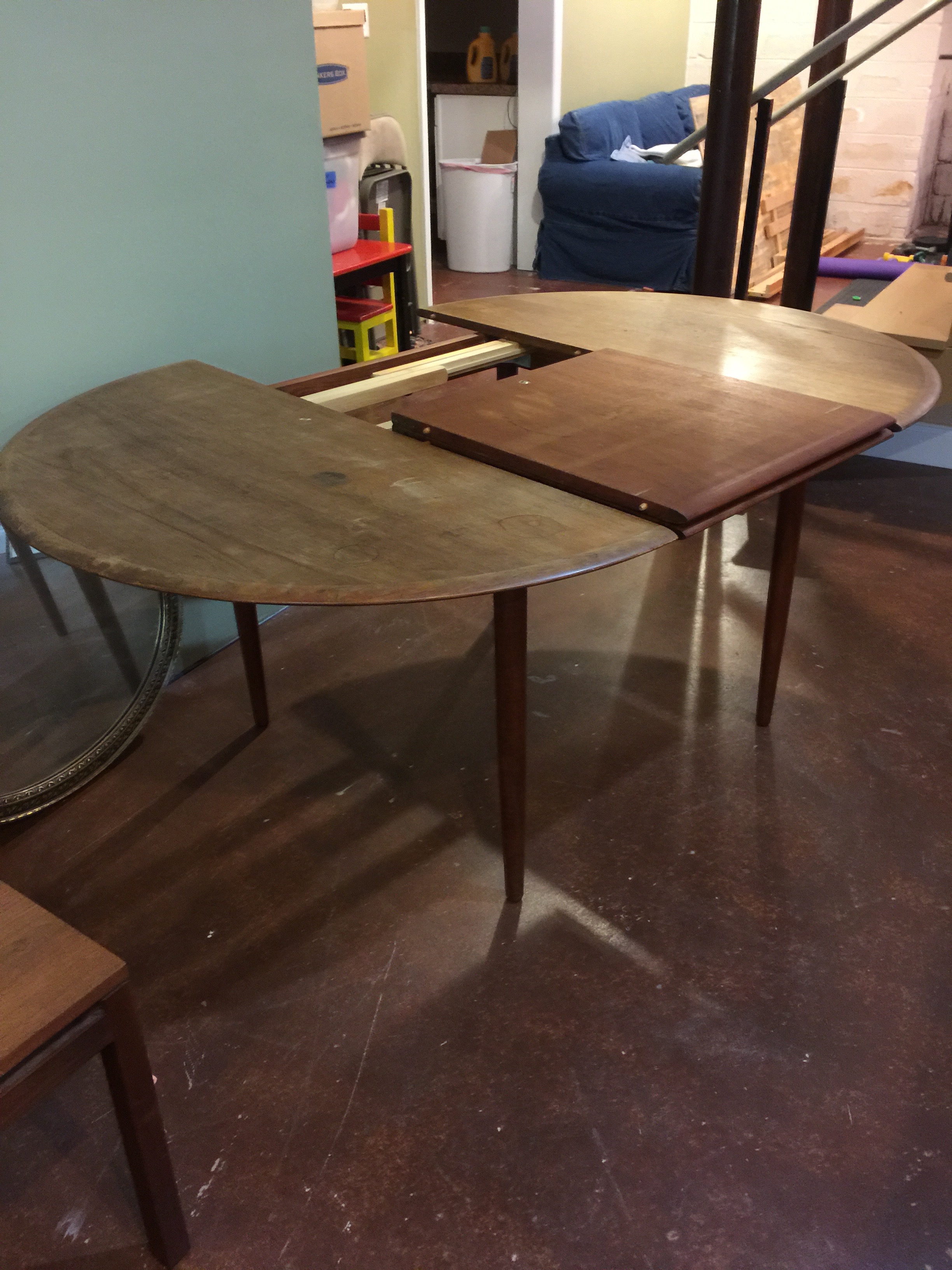 My brother has inherited a teak dining table made by Mogens Kold and purchased by our grandparents circa 1960 in Manhattan.  The table is in good shape, but the top will need refinishing.