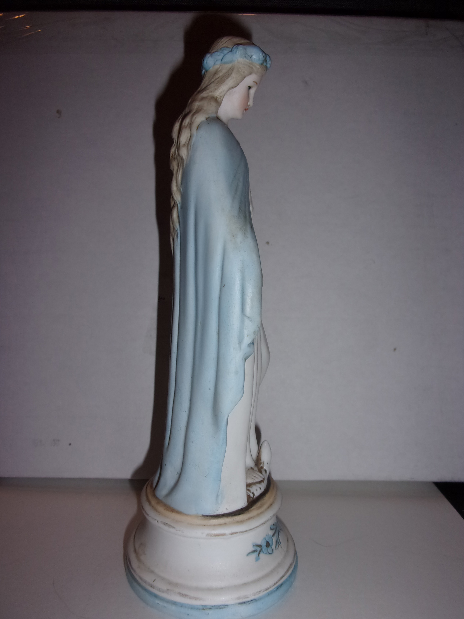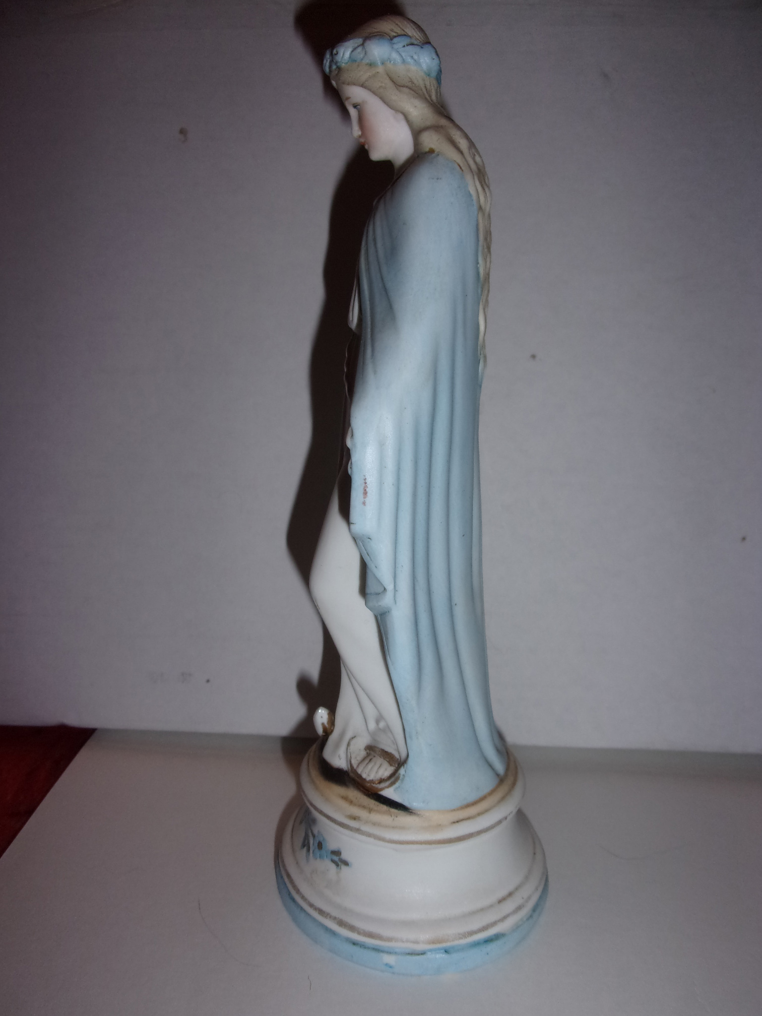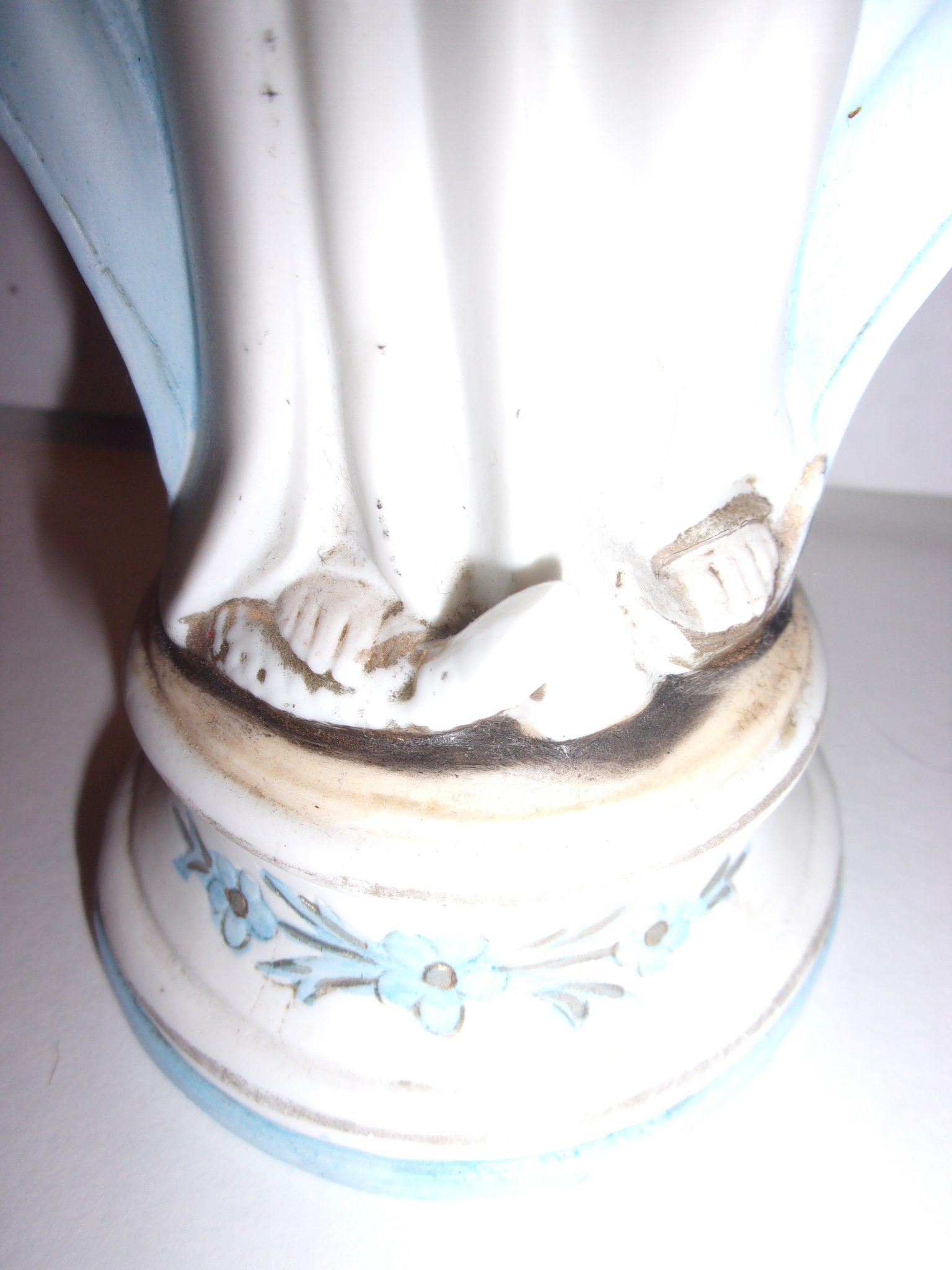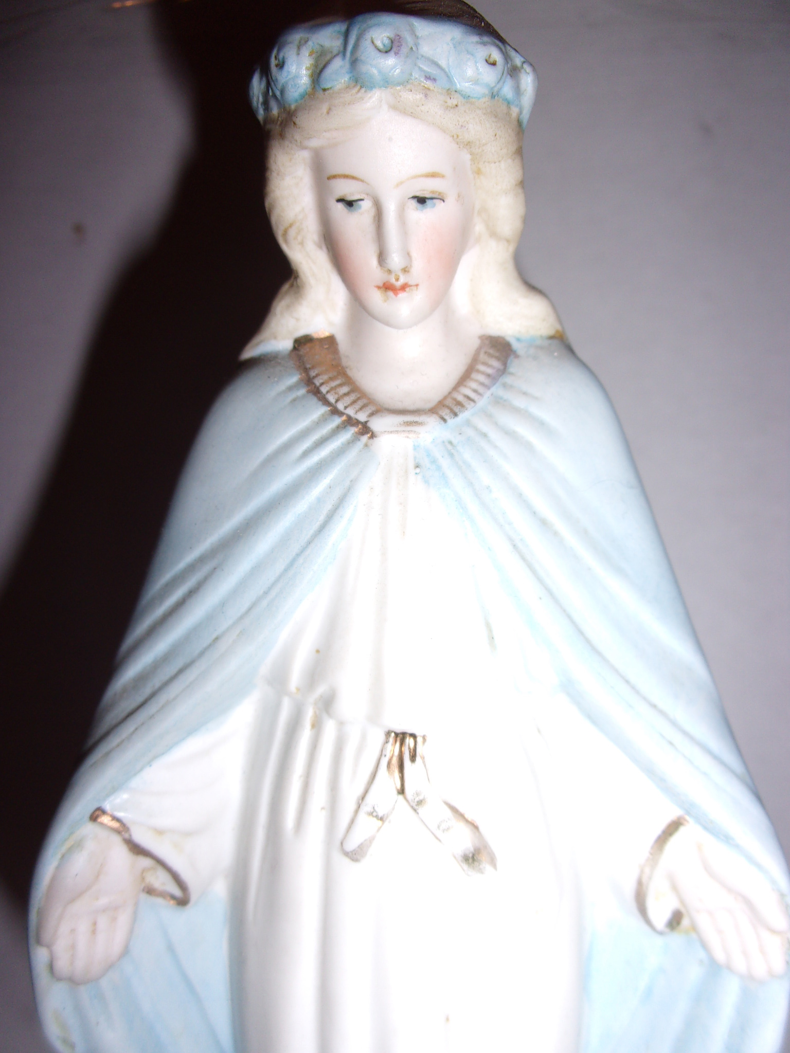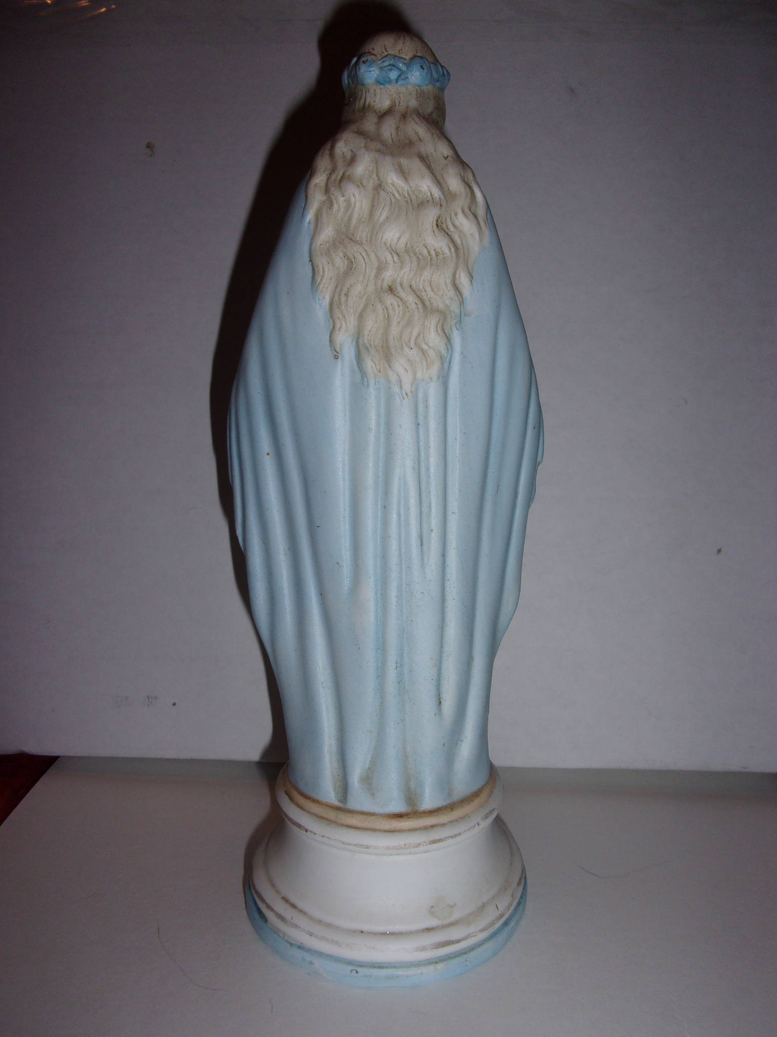 Good day, my mom has had this statue for my entire life. She says it belonged to her father and he claimed to have gotten it in France when he was young. (Think early 20th century) He was also VERY protective of it. She doesn't know anything else about it however. We don't know even who it it is a depiction of. My assumption is that it is religious in nature but I do not know. I can see no apparent markings on it to identify it. It is old and in rough shape, so for all I know they could have rubbed off? My hope is somebody here might know more about it. Thank you for looking!