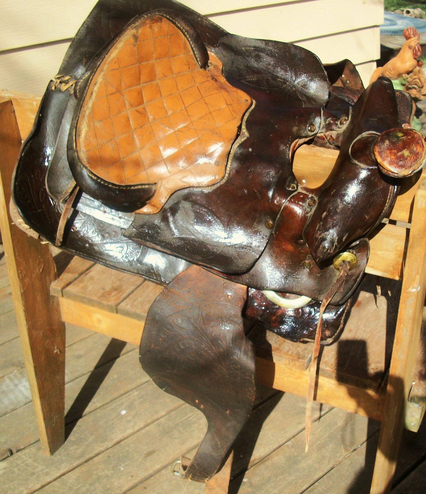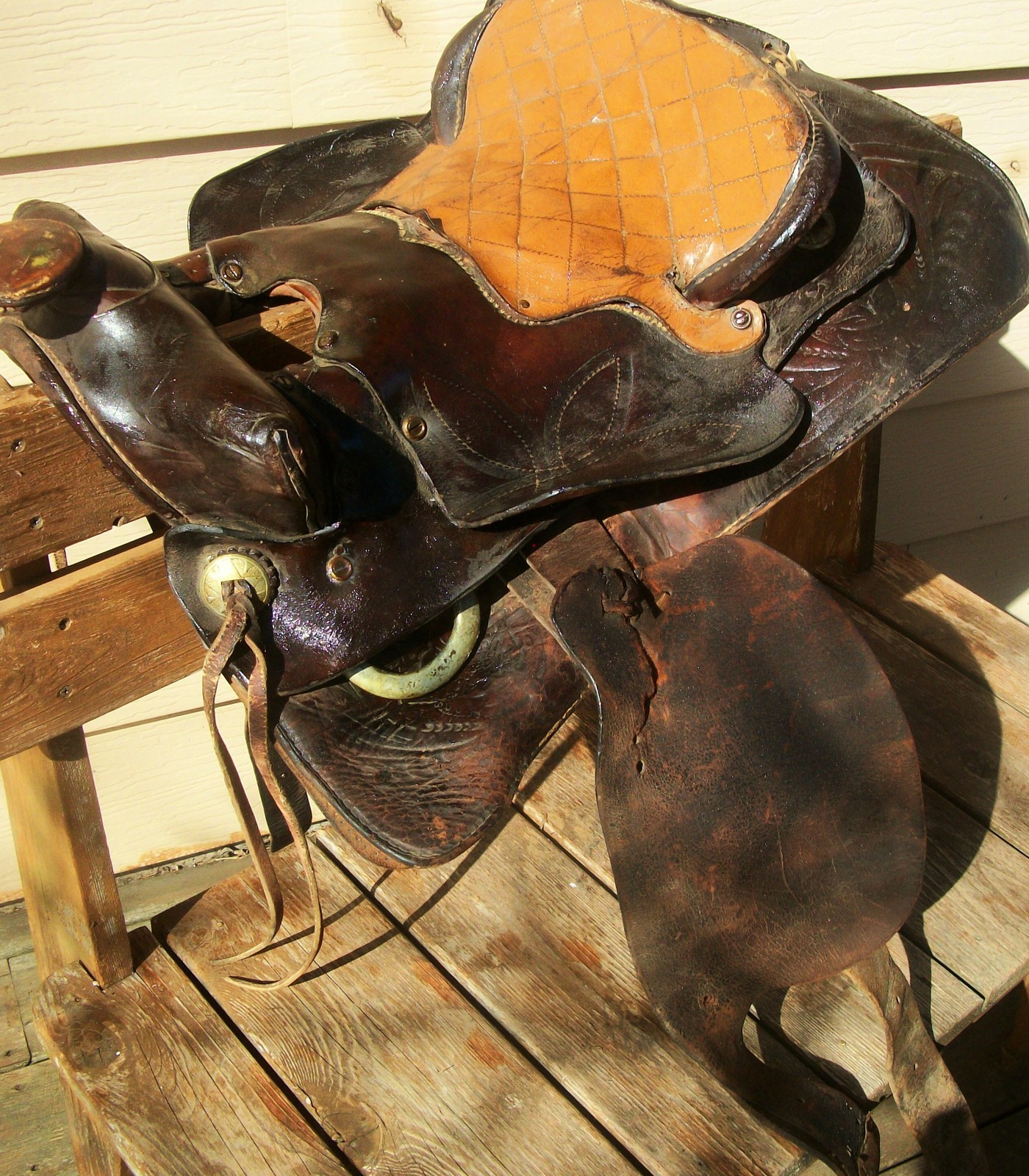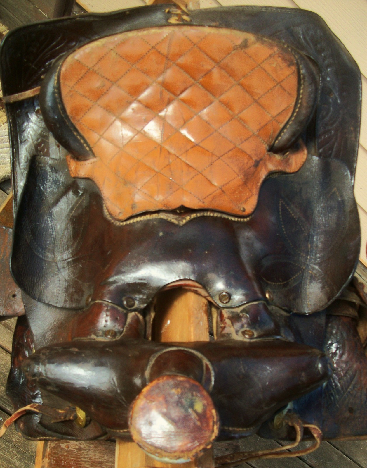 This is a western saddle I acquired on ebay, & would like more info like a possible year/era. Used originally on a northern Montana ranch, year unknown & no visible stamps or makers mark (most tooling has been worn off). For the past 20-30 yrs was used as interior decoration for TGI FRIDAYS.