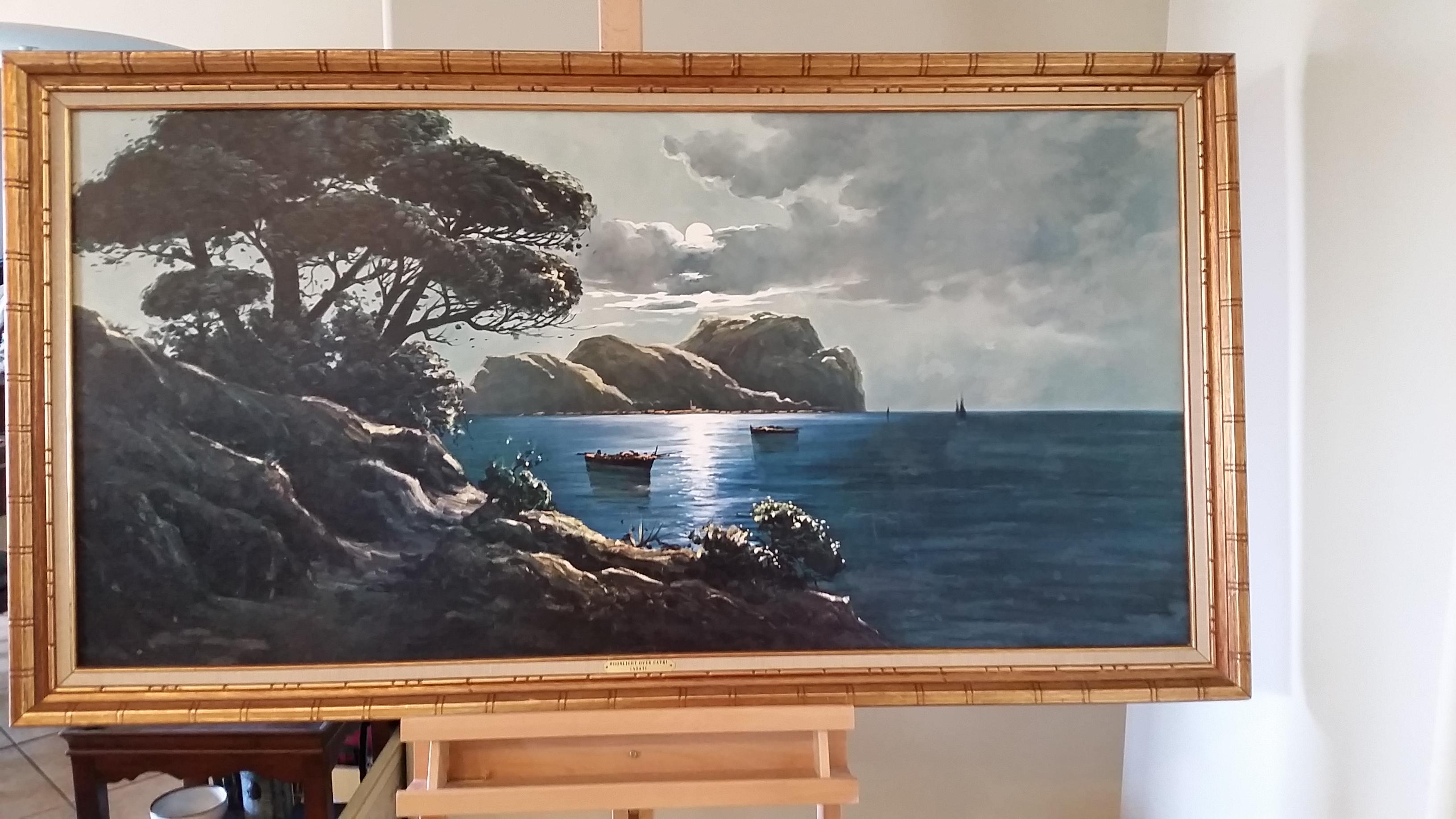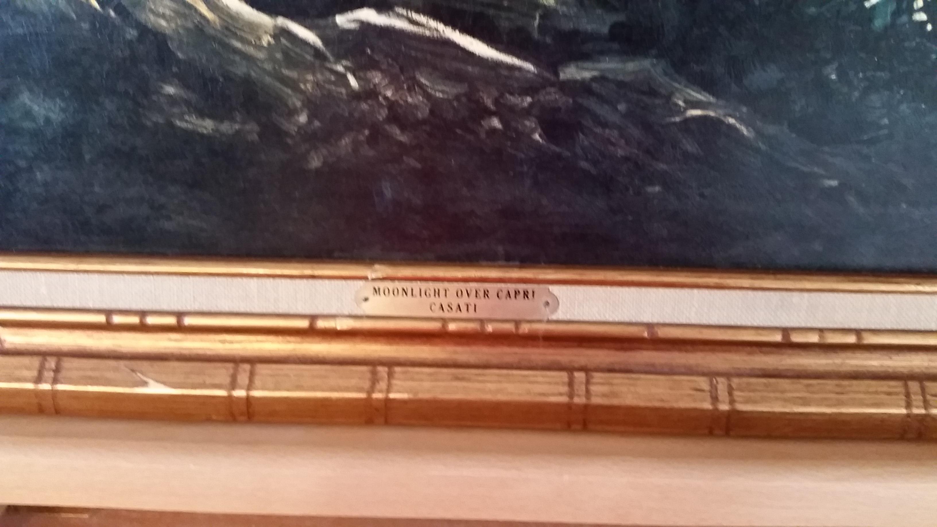Framed pring signed by casti Back has label hand written V2448-401NP Measures 52 3/8 x 2 Left corner white marking Very good condition back corners paper tearing and taped.